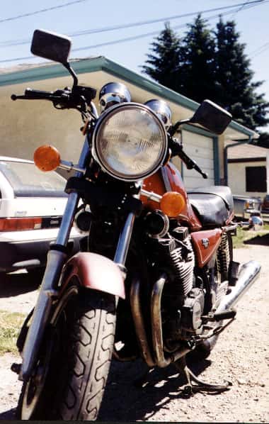 Just picked this one up on Saturday, June 29th, 2002. Gave her a full tune up and replaced the 4 spark plugs and spark plug caps. Also changed the motor oil and filter (Wix) as well as the shaft drive oil (80w90). New rear tire as well (Cheng Shin 120/90-18 Marquis) recommend by the mechanic. The cheng-shin is a great tire so far with no complaints (3,000km) in fact I’ll most likely get another one when it wears out next year.