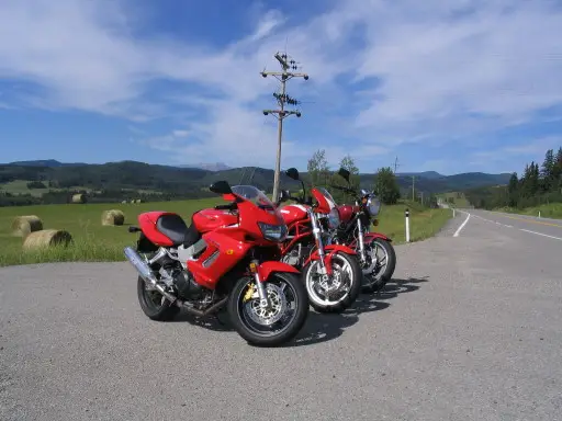3 Reds in a Row. Looks great next to the new Ducati and Honda VTR.