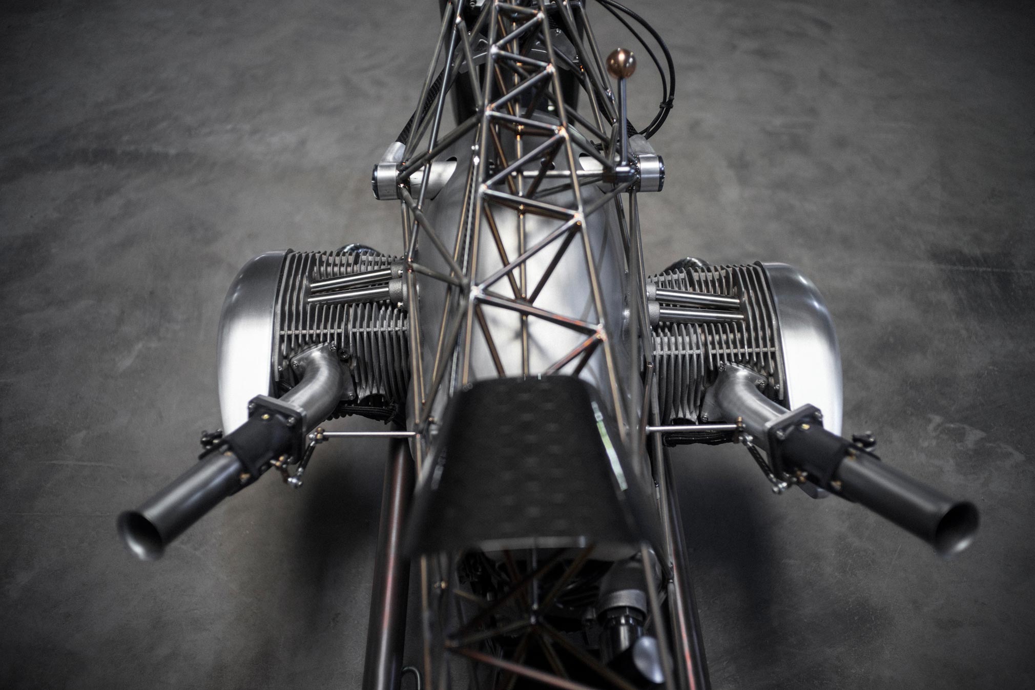 Alan Stulberg’s team was inspired by Ernst Hennes’ record-setting machines from the late 1920s and early 1930s. It took around six months to develop the motorcycle. “We had already dreamed about this bike for years and in December 2018 we received the engine and could finally get to work”, says Alan Stulberg. “I have always been a fan of the boxer engine, but the pure physical size and aesthetic appeal of this prototype really inspired us.” The bike was completed in time for the Handbuilt Show in a period of nearly five months.