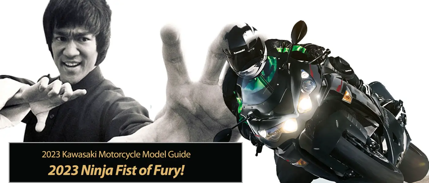 Riddle me this: What do you get when you have 22 Ninja’s in a room? A: Bruce Lee movie! Enter the 2023 Kawasaki Ninja Fist of Fury! New Kawasaki Hyperbike Ninja’s, Supersport Ninja’s and Sport bike Ninja’s form a Circle of Iron and unleash the Way of the Dragon upon the Honda, Suzuki and Yamaha competition. Like a Bruce Lee movie the new Kawasaki Ninja’s are a must see from Japan, like the 2023 Kawasaki Ninja H2R, 2023 Kawasaki Ninja ZX-10R ABS KRT Edition, 2023 Kawasaki Ninja ZX-6R ABS, 2023 Kawasaki Ninja 1000SX, 2023 Kawasaki Ninja 650 ABS and little dragon 2023 Kawasaki Ninja 400 ABS KRT. Check them all out on Total Motorcycle today!
