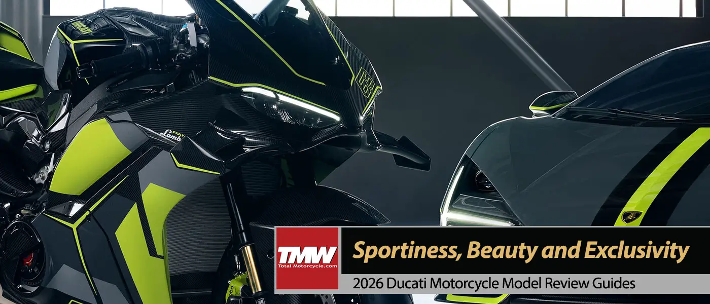 Take all the time you like to look around at the new 2026 Ducati Panigale V4 Lamborghini and 2026 Ducati Panigale V4 Lamborghini Speciale Clienti or the 2025 Ducati Panigale V4 Tricolore Italia (late 2025.5 model) models, they are a treat for the eyes here at Total Motorcycle in our 2026 Motorcycle Model Review Guides!