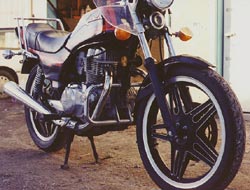 We decided to give the bike a more up-to-date look at removed the luggage rack and huge windshield. Also to make the bike easier to ride and as light as possible for a new rider.