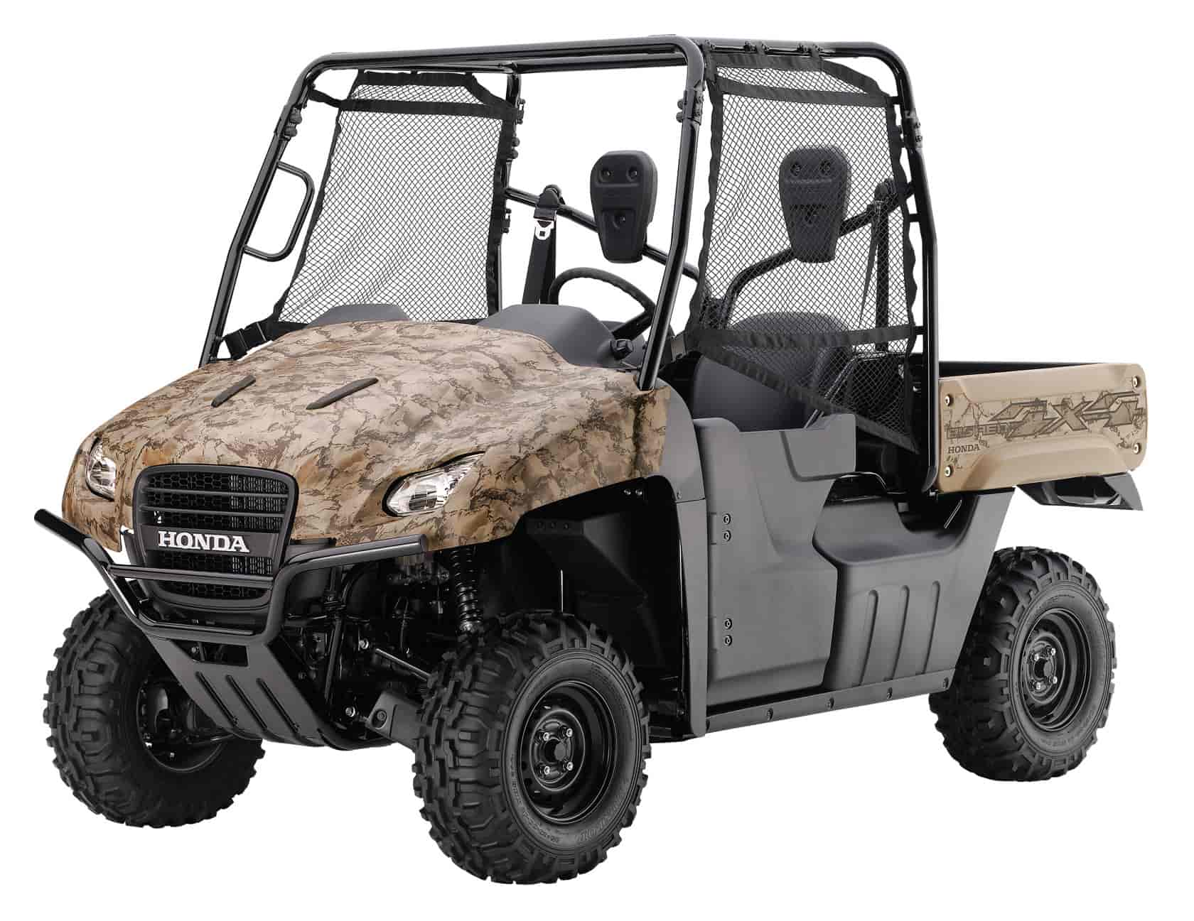 – Specially designed 25 x 10-12 front and rear tires provide added ground clearance while eliminating the need for multiple spares during extreme use.