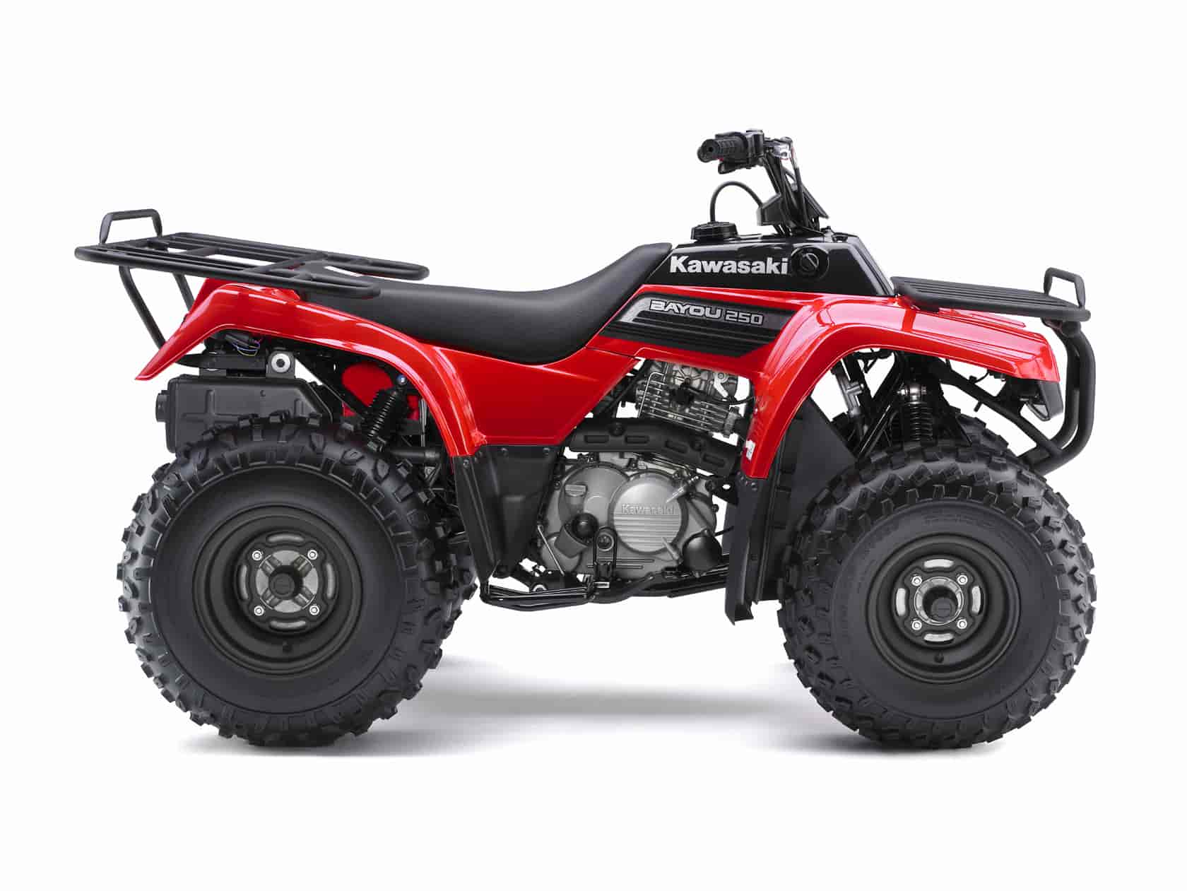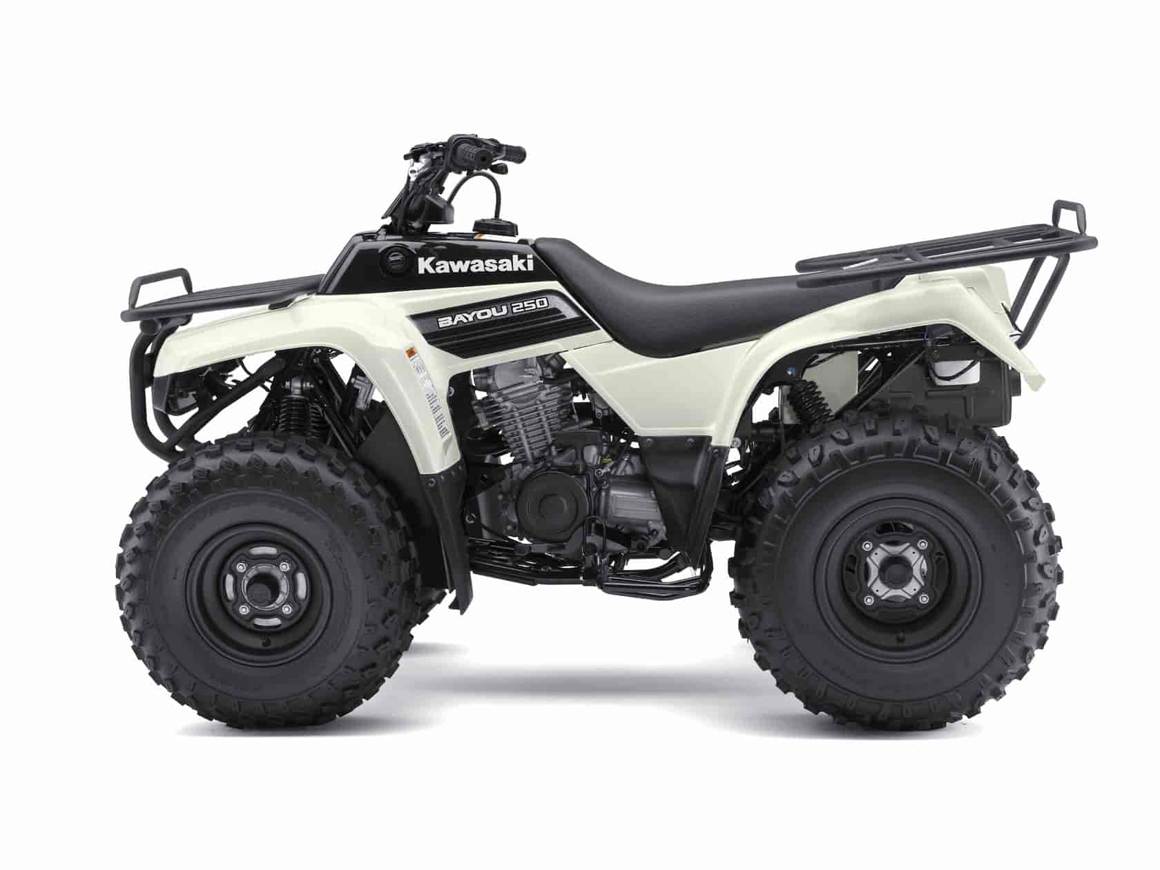 Whether it’s tasked with play or work, it’s a sure thing the tough and economical Kawasaki’s Bayou® 250 ATV will excel at the job. Its long-lasting, electric-start four-stroke engine, five-speed transmission and steel cargo racks make the Bayou 250 synonymous with four wheel value.