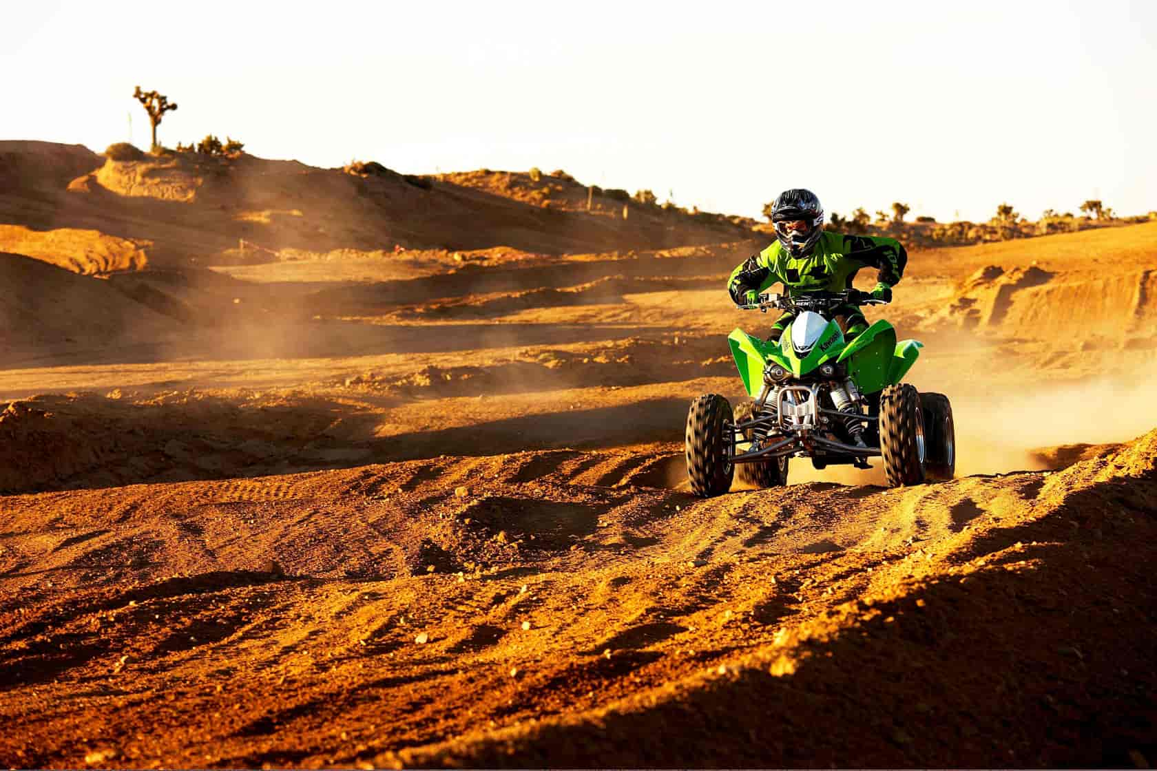 Other race-ready features include a lightweight titanium exhaust header pipe and a durable forged piston. The fast and reliable KFX450R was also the first competition-oriented ATV to include a reverse gear. Previously unheard of in racing, the KFX450R’s lightweight reverse system lets riders quickly extricate themselves from first turn chaos, dead-end trails or any other on-track incident.