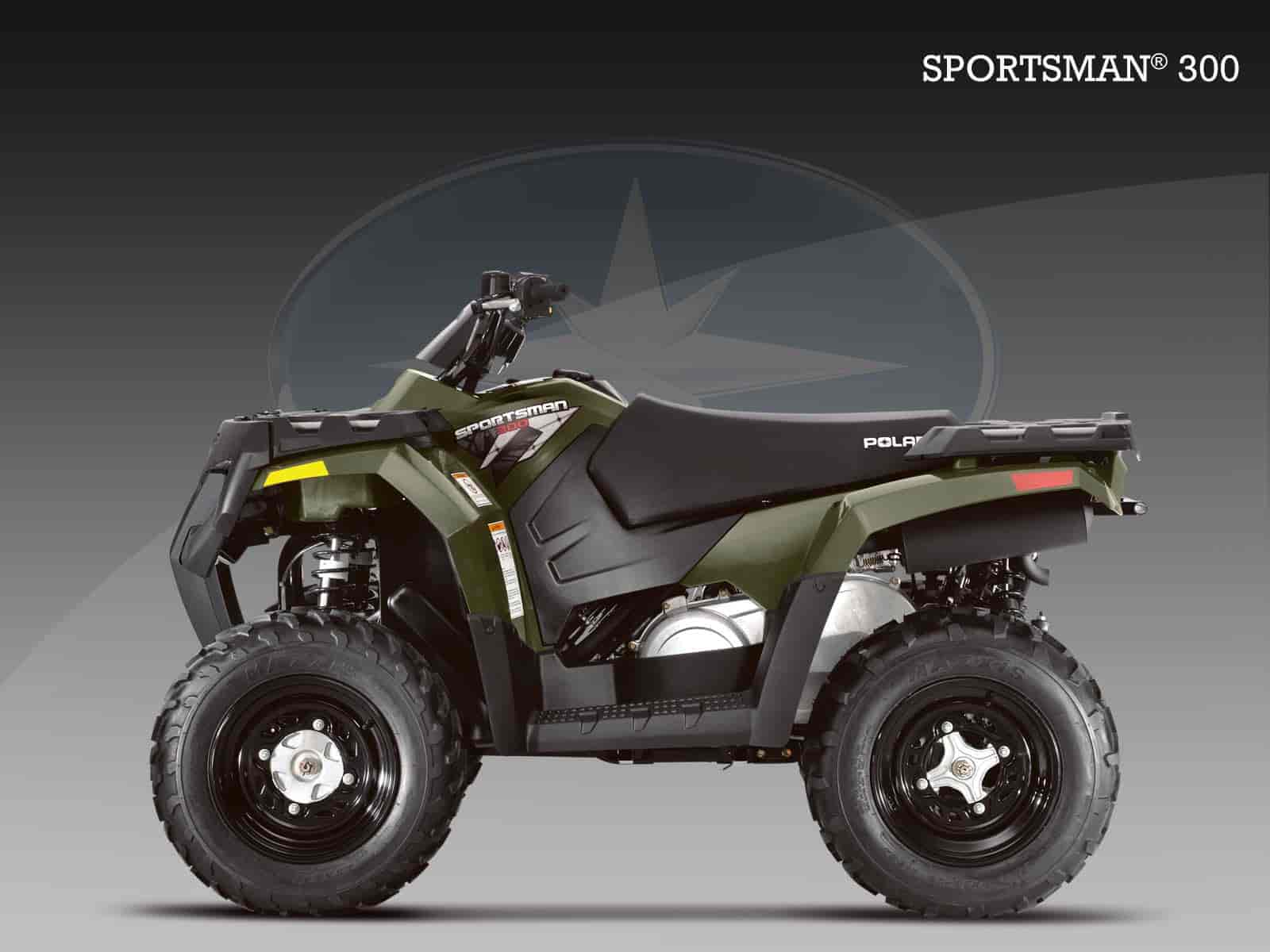 The 2010 Polaris Sportsman® 300 ATV combines full-sized features in a more agile & lightweight mid-sized package. It is ideal for ATV trail riding, ATV hunting, and is the perfect mid-sized Utility