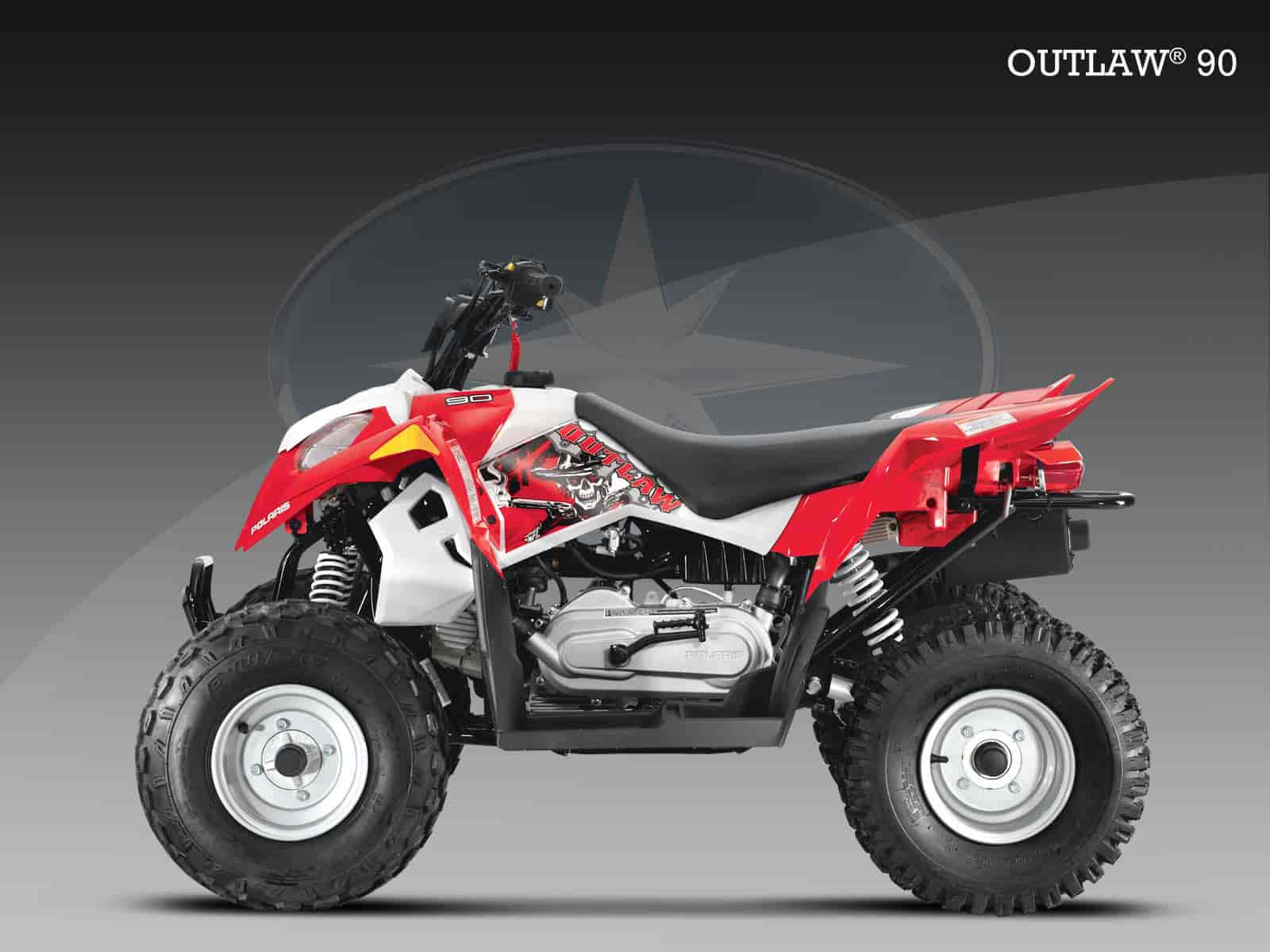 The 2010 Polaris Outlaw® 90 Youth ATV is one of the best selling youth ATVs and is perfect for young riders. It’s styled after the adult Outlaw® and has a parent-adjustable throttle limiter plus many other safety features. It comes with a youth helmet. No operators 12 years old and under.