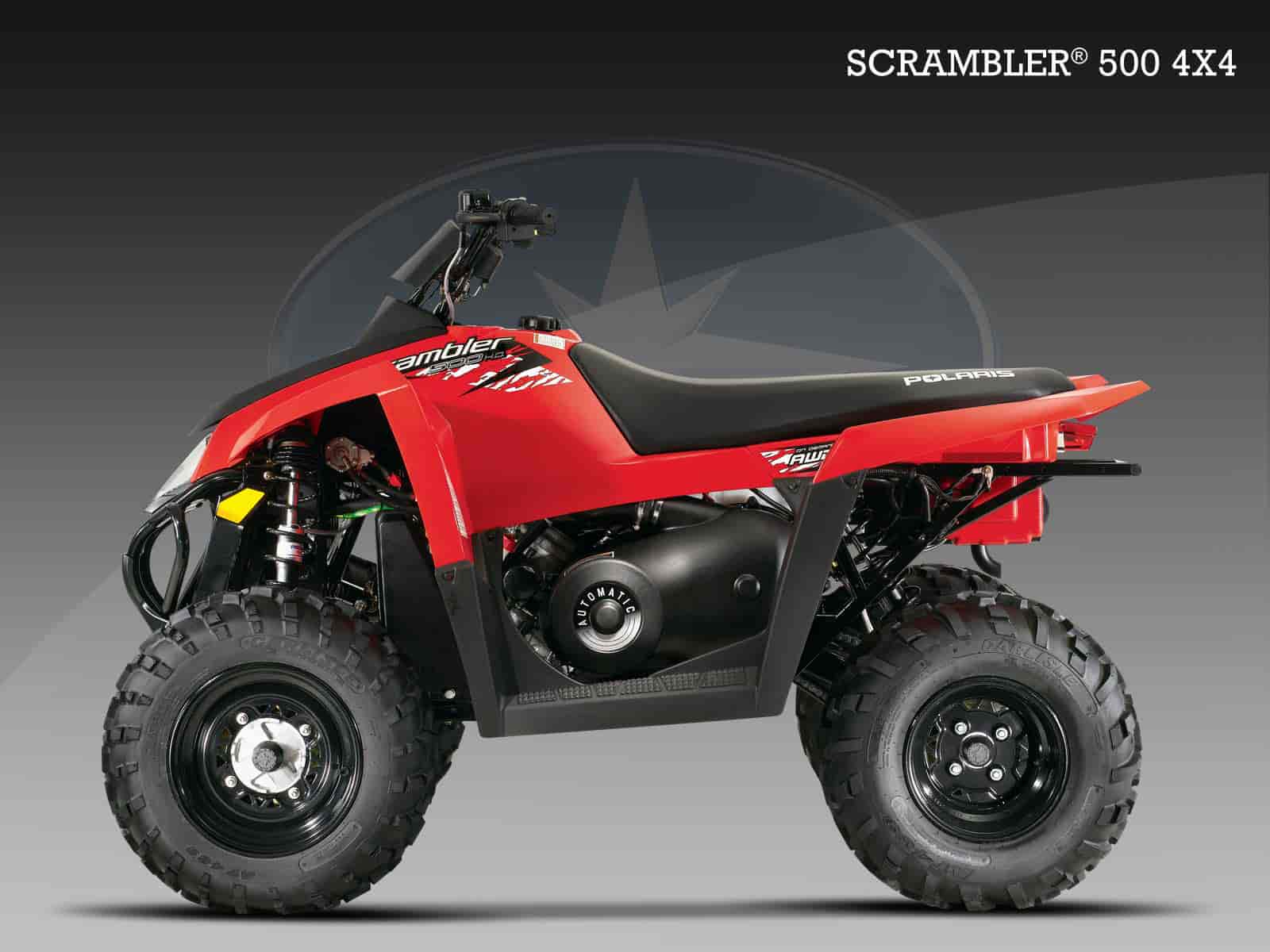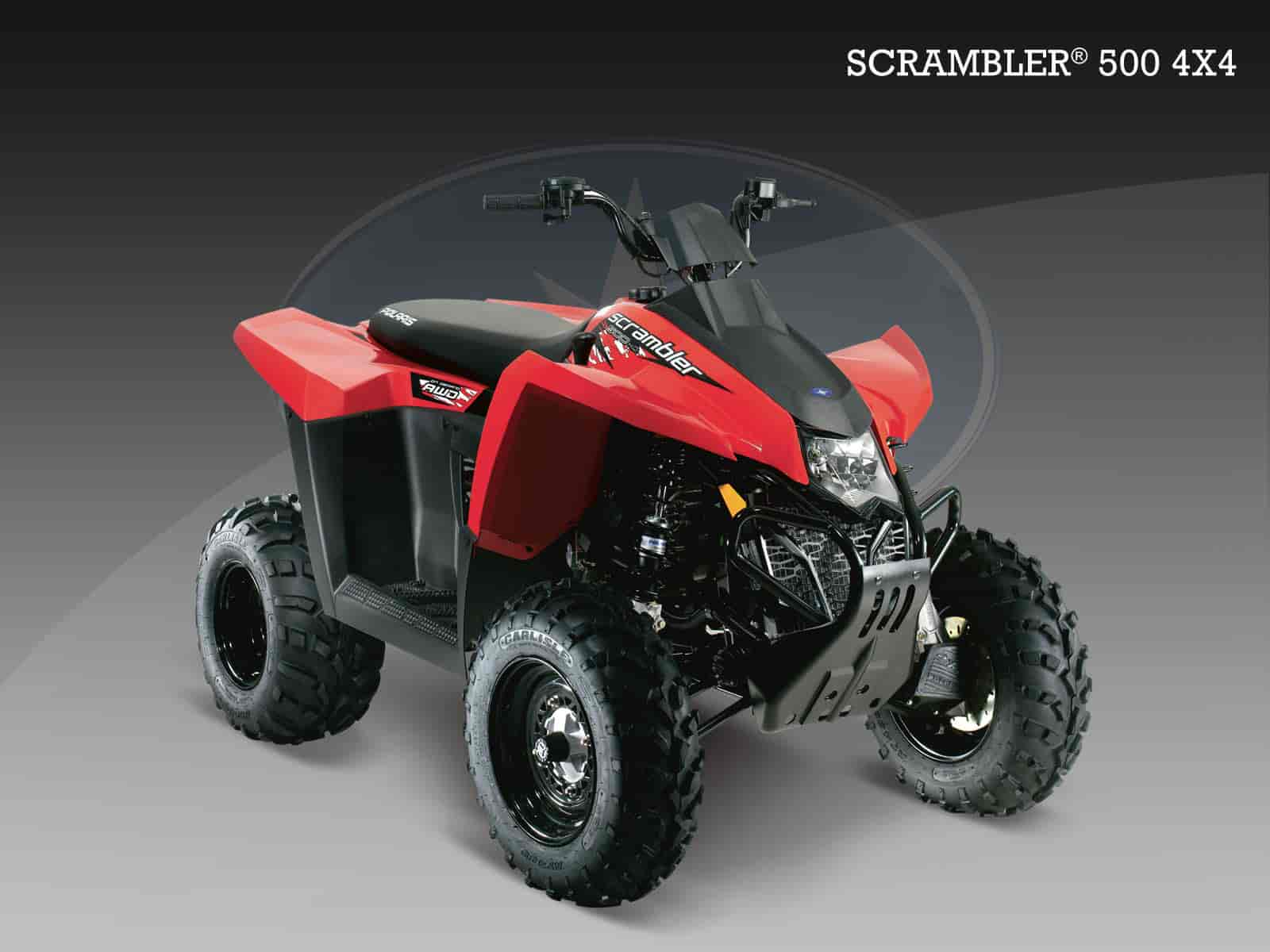 The 2010 Polaris Scrambler 500 4×4 ATV is the World’s Most Trail-Worthy 4×4 Sport ATV. Is has been redesigned from chassis to suspension to styling – an all-around incredible-performing ATV for trail riding where you need big, reliable power and traction.
