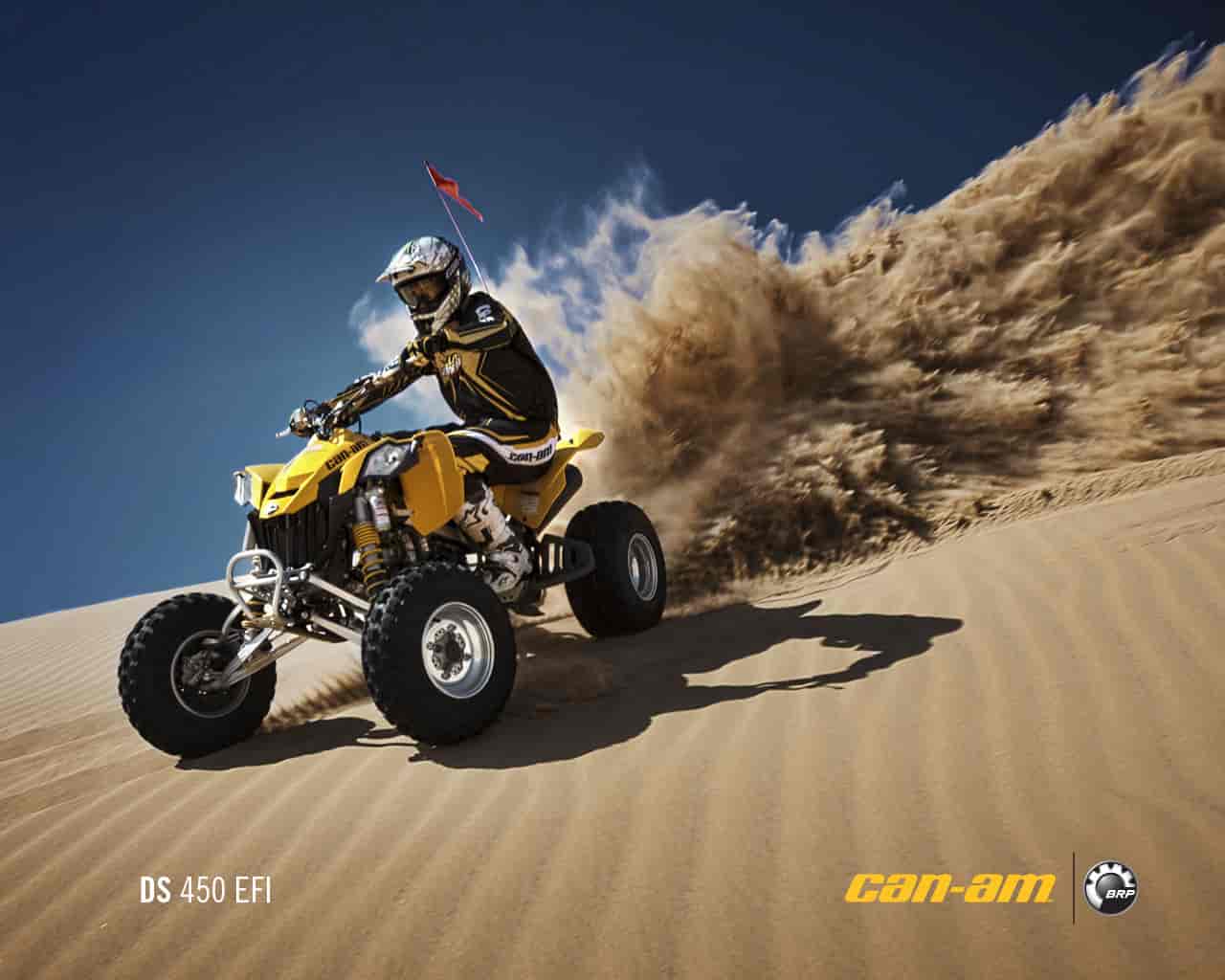 In developing the 2011 Can-Am DS 450, we truly reinvented how a sport quad is built. With the industry’s first no-weld all-aluminum frame, hollow rear axle and inverted brake calipers. We then pushed the concept even further with two terrain-specific X models. The tight-woods racing DS 450 X xc and motocross-inspired DS 450 X mx. Both are equipped with industry-leading features and are ready to race right out of the box. You can read on. But eventually, you’re just going to have to ride one.