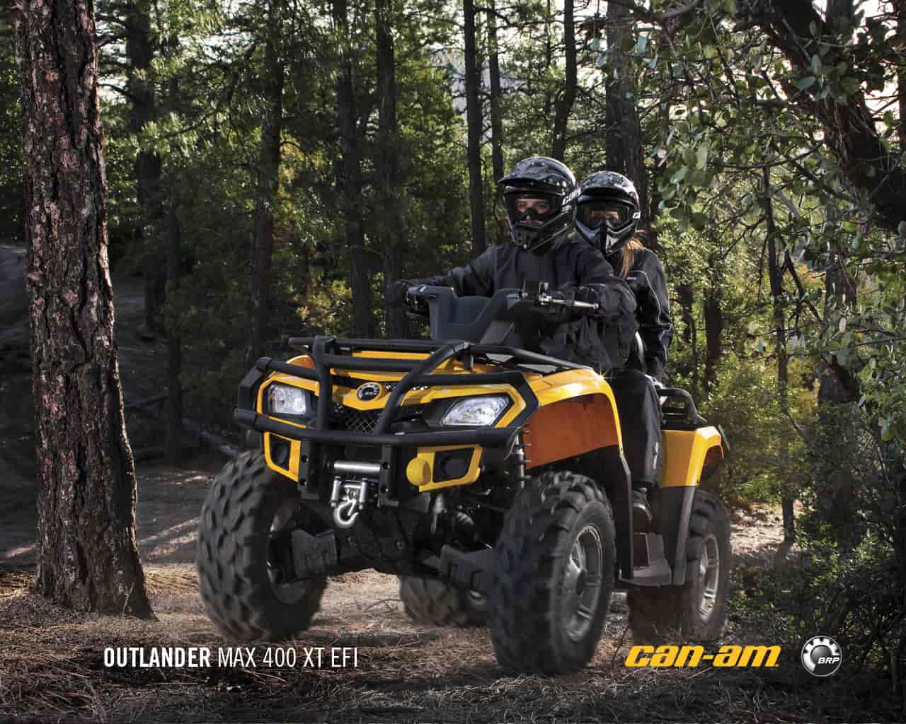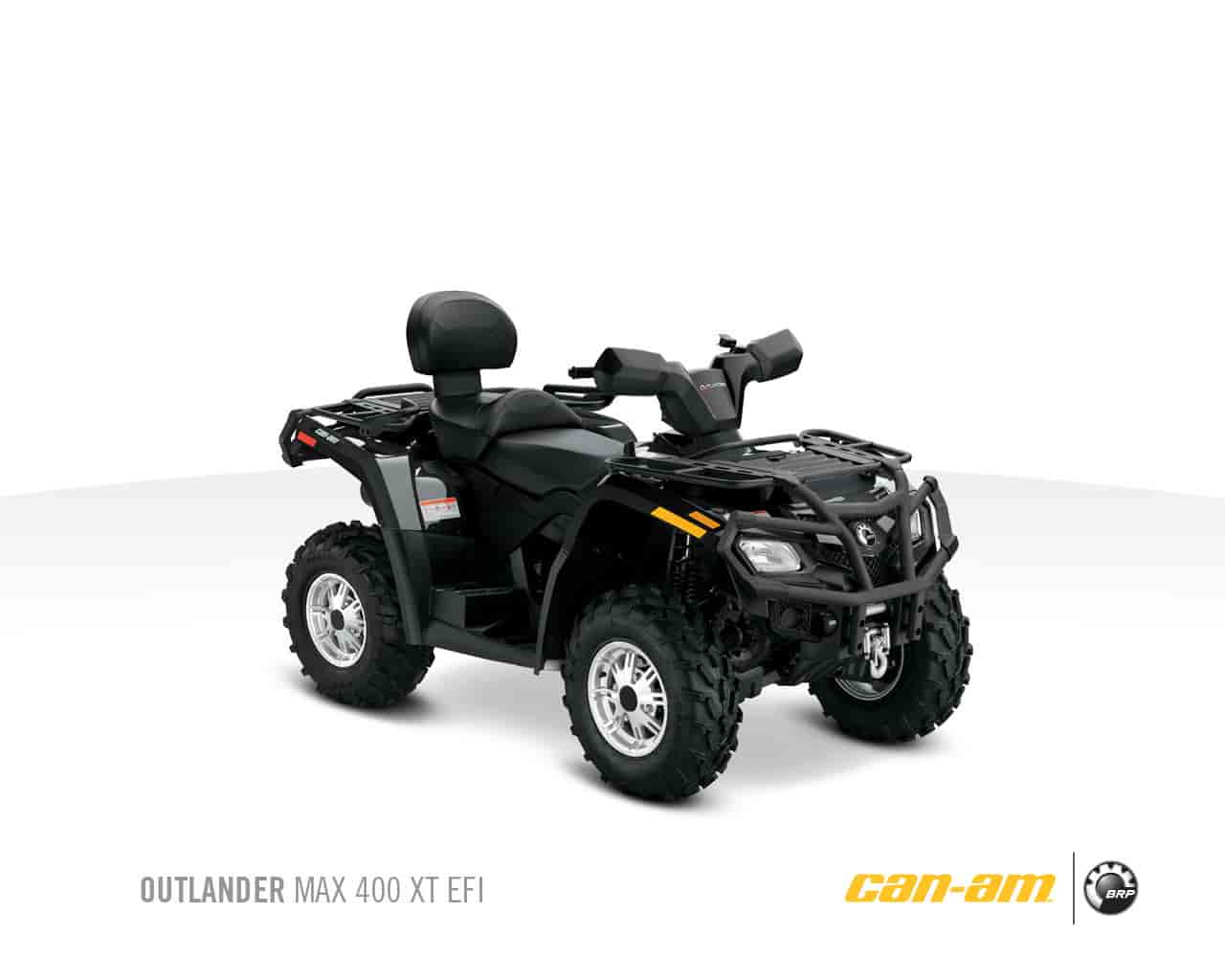 The 2011 Outlander™ MAX 400 XT delivers two-up capability with the most powerful engine in its class, a 32-hp Rotax 400 cc EFI. Complete with passenger-friendly features like a comfortable raised rear seat, sturdy ergonomic passenger handgrips and raised floorboards. Better hurry. The trails are waiting.