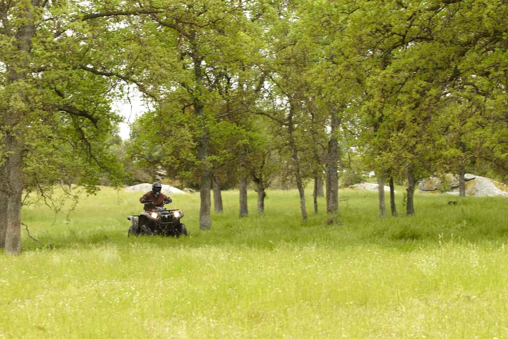 ” Fully independent long-travel four-wheel suspension features double-wishbone suspension front and rear with five-way preload-adjustable shocks for maximum control and comfort over rough terrain. Smoothest-running and -riding Grizzly ever.
