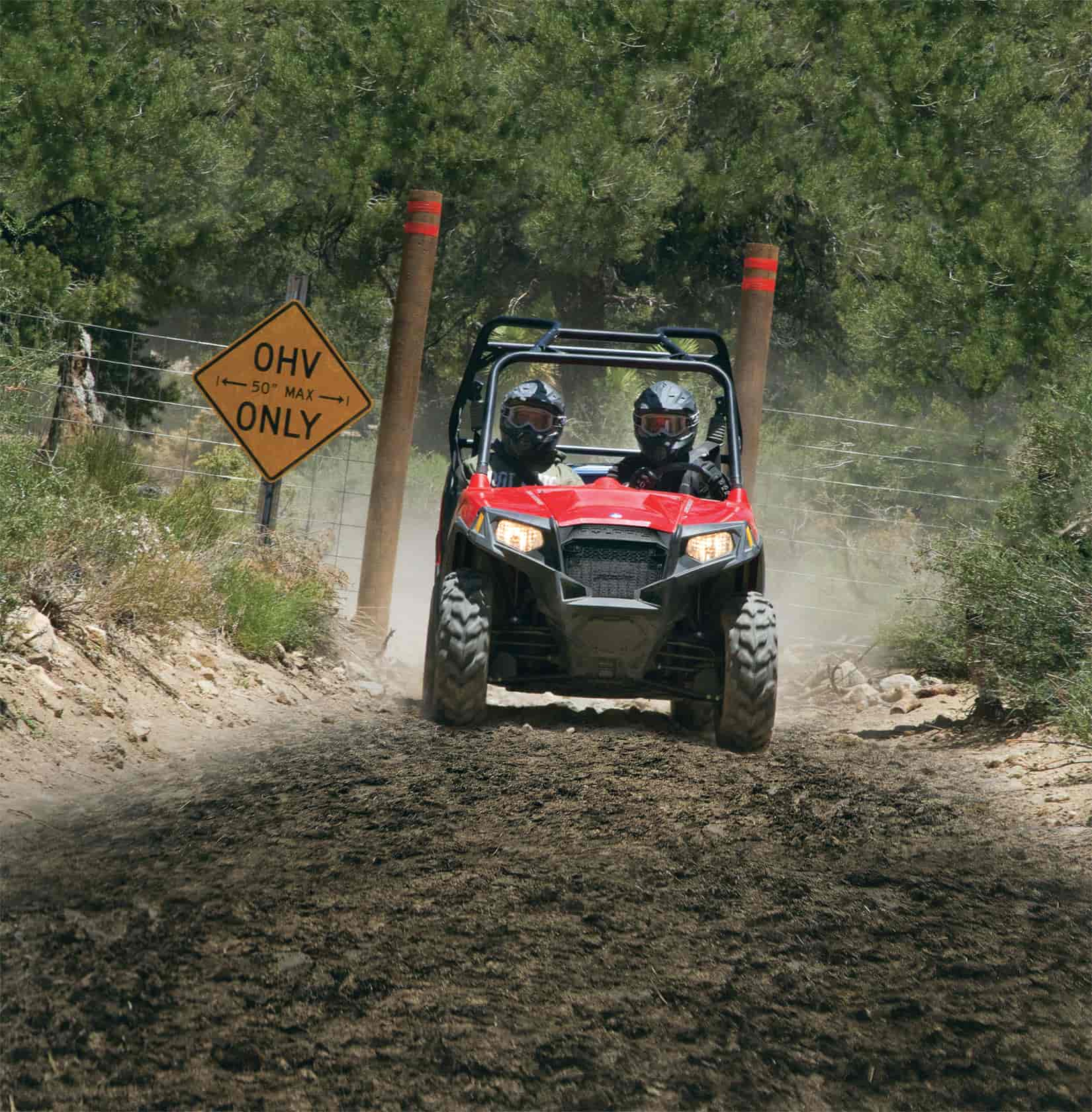 With a 50″ width, just 2″ wider than many ATVs, the RANGER RZR goes where other Side x Sides can’t. It’s the only trail-capable* Side x Side on the market.