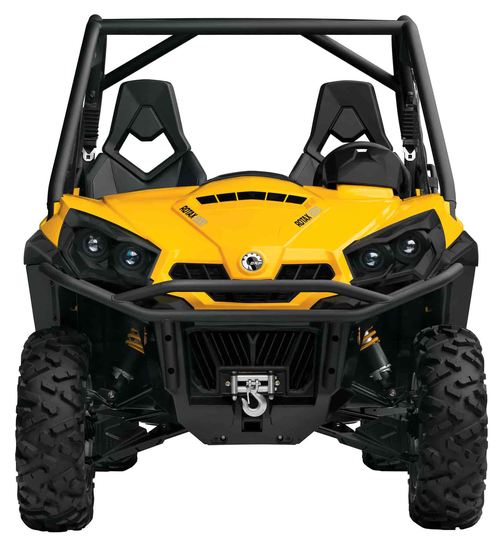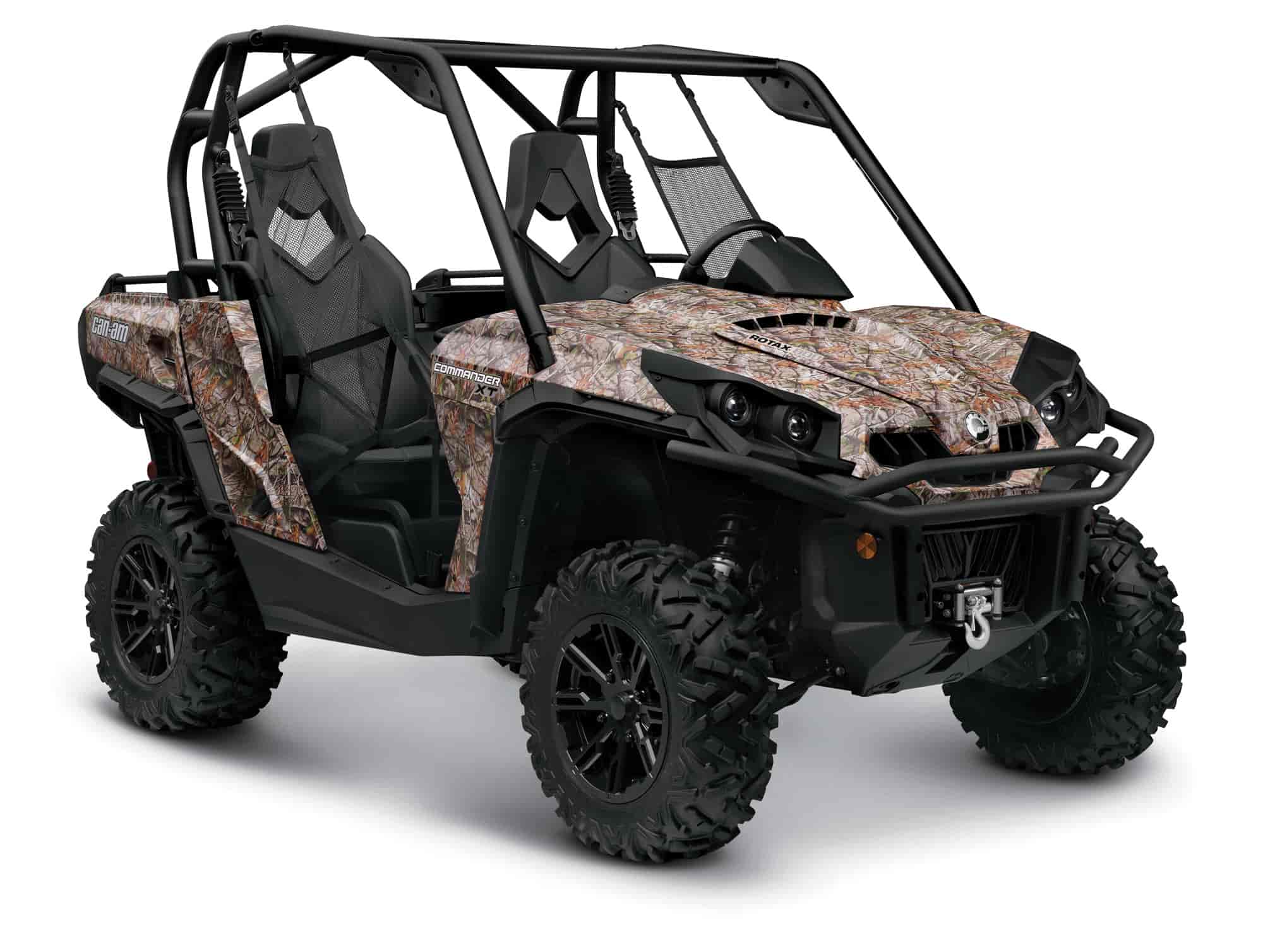 The Can-Am Commander family of side-by-side vehicles features the industry’s best lighting system at 240-W. Automotive-style projectors, on each side, run at 120-W in low beam and 240-W in high-beam mode.