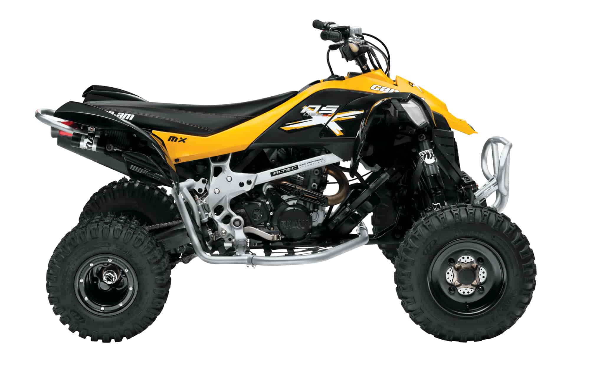 Class-leading power-to-weight ratio of any 450-class sport ATV – The DS 450 features an innovative, no-weld ALTEC™ aluminum frame and a hearty Rotax® engine for the industry’s best power-to-weight ratio of any 450-class sport ATV. Combined those features with other weight-saving innovations (hollow rear axle, aluminum parts) and mass centralization engineering to reduce unsprung weight and the DS 450 is unmatched in its class.