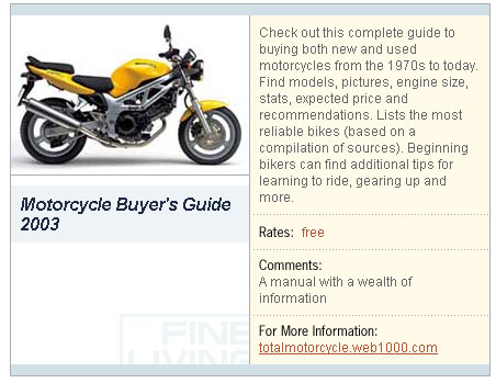 December 28th, 2003: Thanks to the Australian motorcycle magazine Cycle Torque for featuring us in their magazine. Unfortunately we don’t have a copy of it. Richard Sanford referred to us as “Total Motorcycle, A beginners guide, a huge gallery, Everything is right here…”