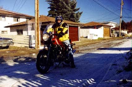 I’m sorry I don’t have a picture of me on this bike. Not much history to share with it. I purchased it a couple of months after my MSF course in Toronto, Ontario, Canada. I wanted a good starter bike, something with power but had style. I remember reading a review for it saying “faster than a corvette”, wow! It was the rear fender that made me fall in love with this bike… ah, what a gorgeous tail end. 😉 I owned the Candy Maroon version… seems I liked Maroon as I also owned too many bikes in that colour!