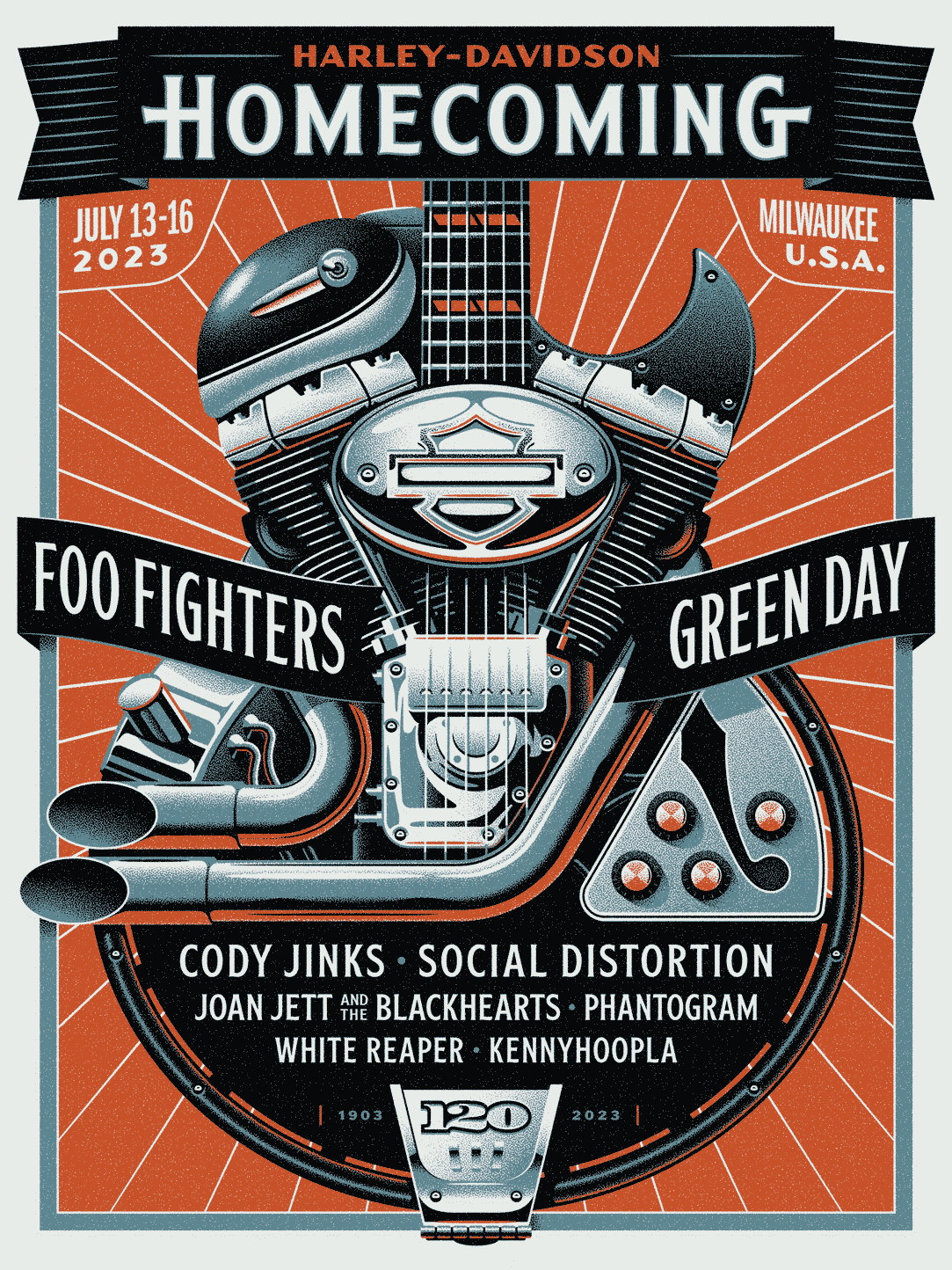 MILWAUKEE (June 8, 2023) – A complete, detailed schedule for the Harley-Davidson Homecoming Festival, the biggest music-and-moto event to hit Milwaukee this summer, has been released. From July 13-16 events will take place at venues across the Milwaukee area, with music headliners Foo Fighters (July 15) and Green Day (July 14) set to perform on stage at Veterans Park on the Milwaukee lakefront to highlight the celebration of the 120th Anniversary of the world’s most desirable motorcycle brand.