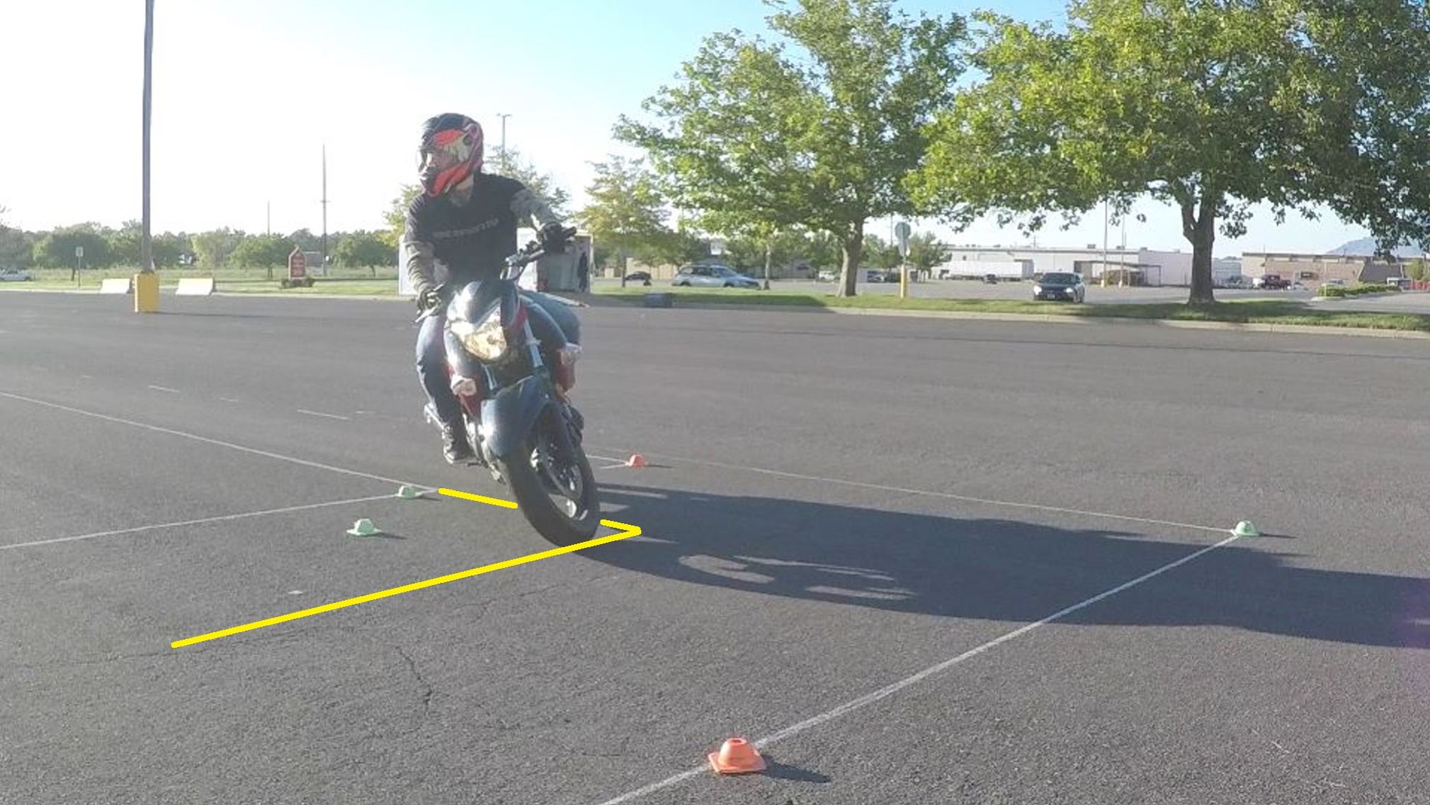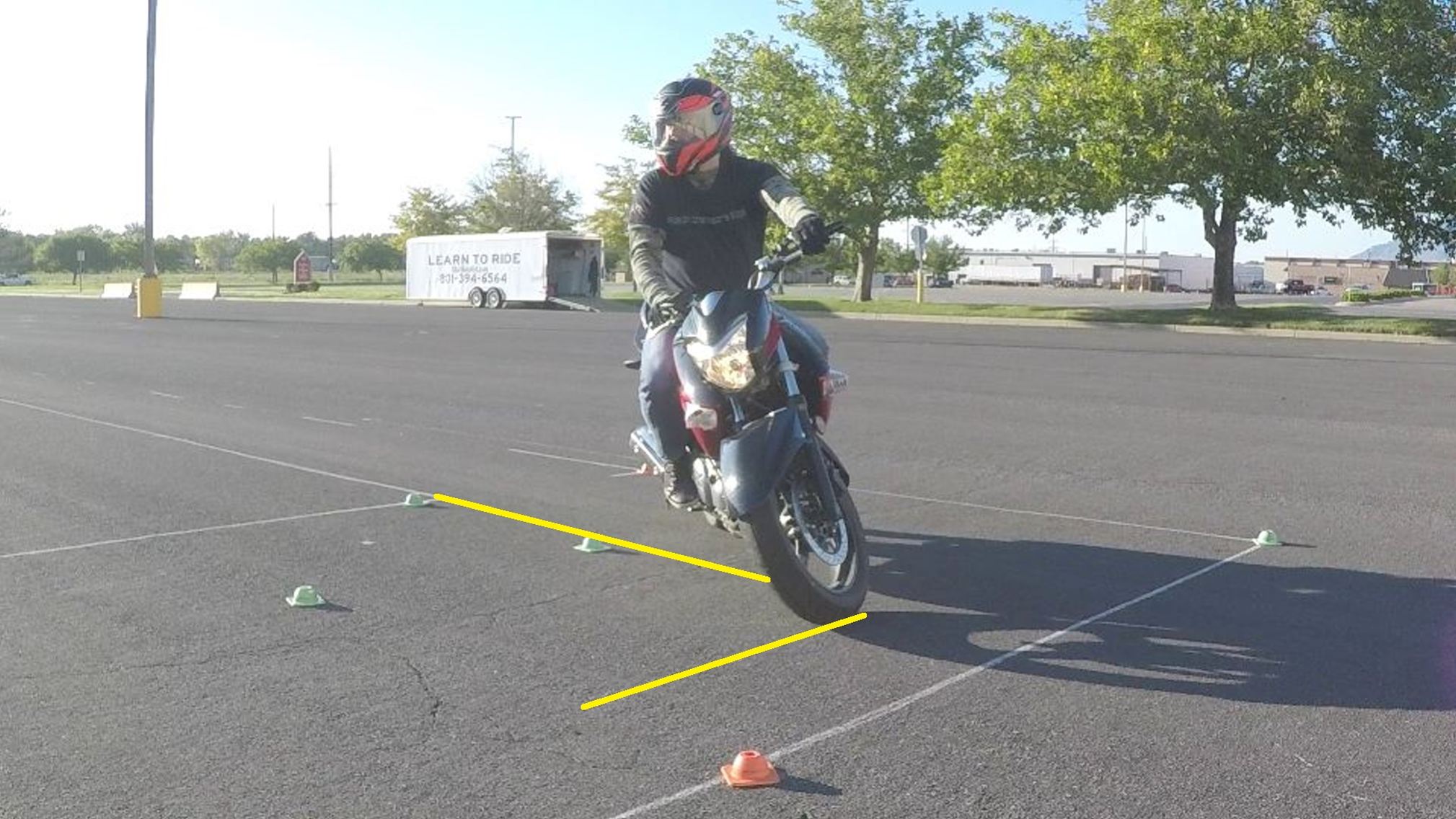 A video of a large group ride inspired this section. At a T-intersection, nearly 40% of riders failed to complete a simple 90° right turn within their lane, drifting wide into the far lane. This highlights how many riders struggle with tight, low-speed turns.