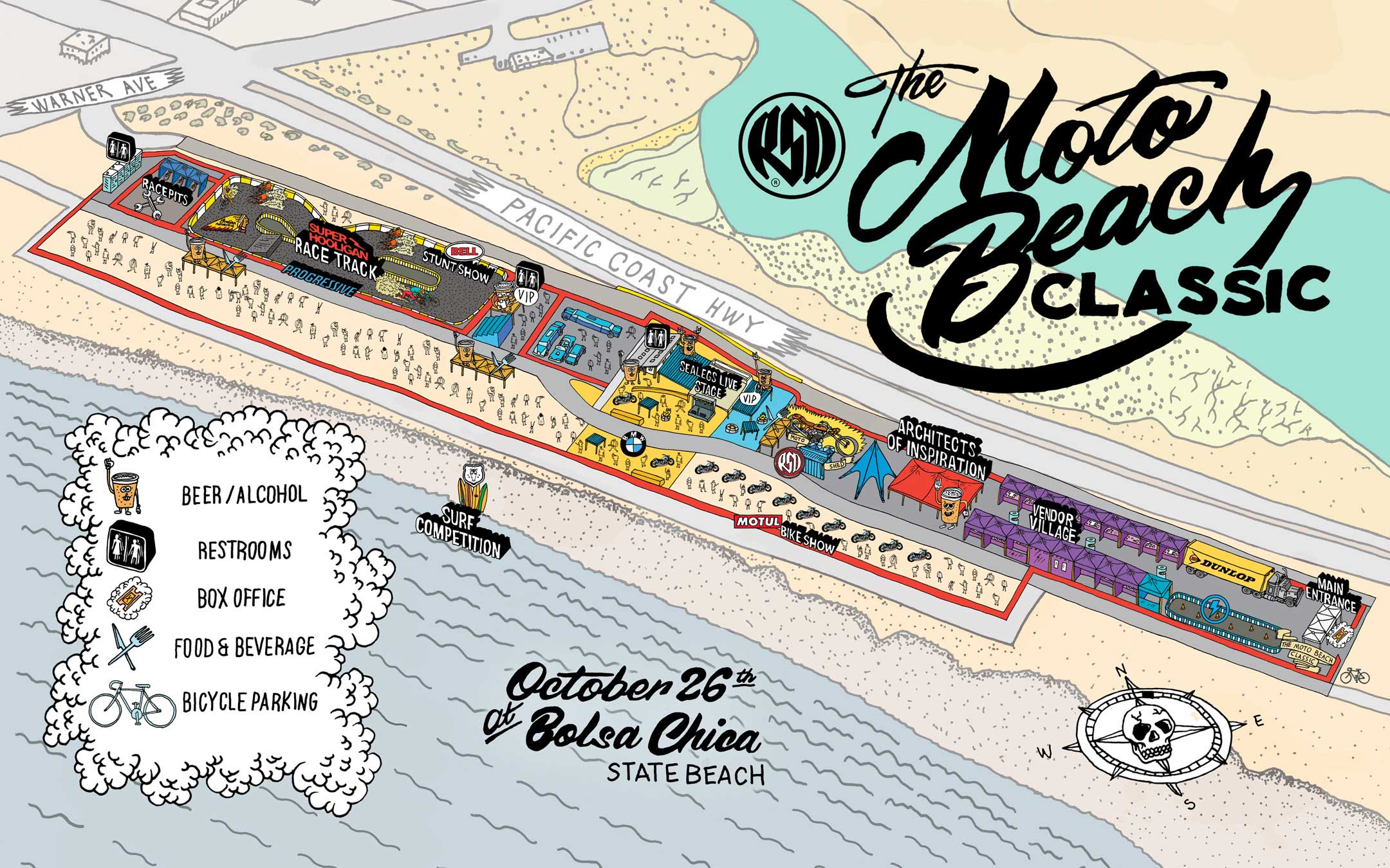 Roland Sands of RSD, “The Moto Beach Classic is the physical realization of a lifetime of insane ideas all jammed into one day at the beach. Surfing, motorcycles, music, racing, art, all on the sand where I grew up surfing. I couldn’t think of a better place to do it and with a better group of people.”