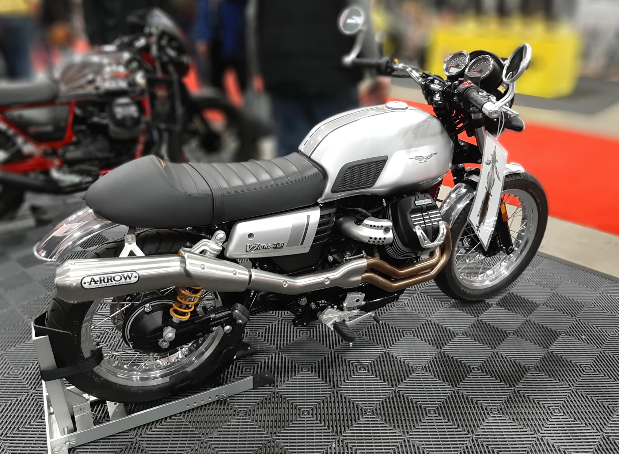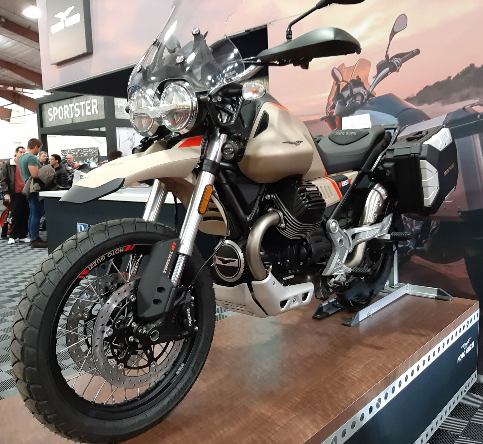 Moto Guzzi showed off a great looking adventure bike. The V85TT. With a 6 gallon gas tank and an 850cc engine, you should get decent range.