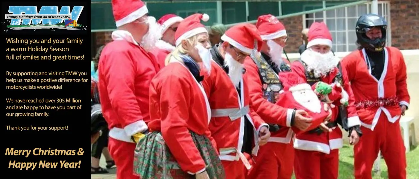 Close your eyes, picture a token motorcycle dude. He has a beard doesn’t he? Keep them closed. Now picture Santa. He has a beard too right? Coincidence? I think not. During the holidays most folks feel the spirit of giving and contribute to many charities. No doubt that’s why singer Andy Williams called it ‘The most wonderful time of the year’. Did you know that the majority of motorcycle riders are in the spirit of giving year around? We’re all just that kind of people. With Christmas just around the corner, this season of giving is the perfect time for Total Motorcycle’s Gear Talk Holiday Episode. We’ll stray from the subject of riding gear and talk about some charitable acts performed throughout the year by riders just like you.