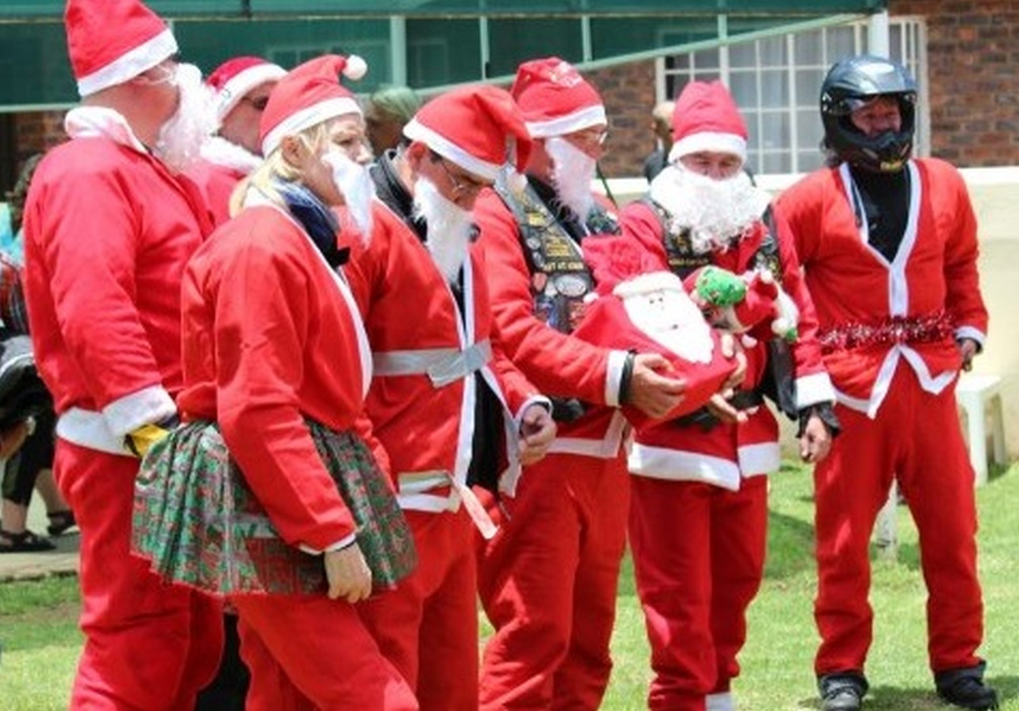 Mr. South Africa Paul challenged his friends… They all dressed up like Santa and rode together on the highways as far as 200 kilometers from their homes to donate to 50+ disabled adults and children for Christmas.
