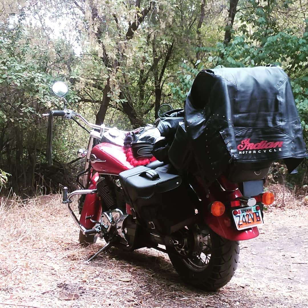 As always, when preparing to ride with a load, figure your total load weight and check your owners manual to make sure you have not exceeded weight capacity. Keep your loads low. Pack heavy stuff either on your tank bag or in front of /over the chassis. Put lighter weight items like your sleeping bag on the luggage rack. Secure your load and make sure to pack extra straps just in case. Make sure your saddlebags aren’t sagging onto your pipes. Look for loose straps or bungees. Take a couple practice laps around your neighborhood before you start your trip, and make any necessary adjustments.