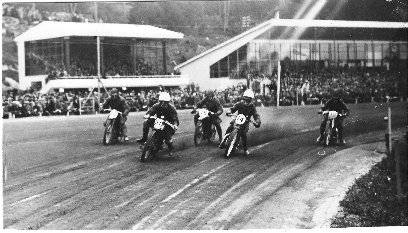 In 1933, Gunnar Barthelsson proved himself as a competent rider when he ousted the competition by winning at Solvalla. He led both his heats on the ultra-fast 700cc Husqvarna machine. Barthelsson had an average speed of 108 km/h, and his winning time was two minutes 46.6 seconds. A year later it was time for another Solvalla experience, again in the famous autumn event at the Stockholm horse-race track. Gunnar Barthelsson again raced with the 700cc Husqvarna engine, which proved to be faster than the machines of his competitors. Not only was Barthelsson fastest during practice, but he also set a new lap record during the first moto at 2 minutes 44.1 seconds after 5,000 meters of racing. This spring event was again well visited from motoring fans. Again, the crowd was estimated at 15,000 spectators. In the final, Husqvarna-mounted Martin Strömberg flew away from the start, going sideways into the first corner. “I was lying as close to the inner edge as I could when I heard the big-bore 700-engine coming up on my outside. Trying to avoid being overtaken was certainly in vain,” said Strömberg. “Gunnar Barthelsson seemed to be born on this heavy machine and there was no way anyone could follow in his tracks”. Barthelsson won the final leg and became the big champion of the day.