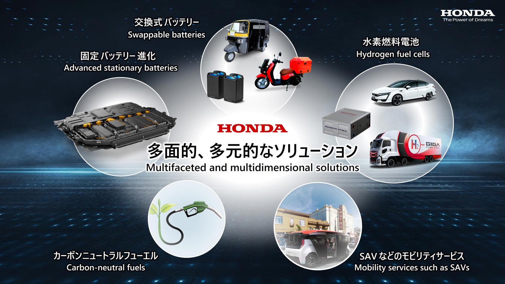 Including the utilization of swappable batteries and hydrogen as well as electrification of automobiles, Honda will offer a variety of solutions for all of its mobility products according to how its customers use the products in various countries and regions.