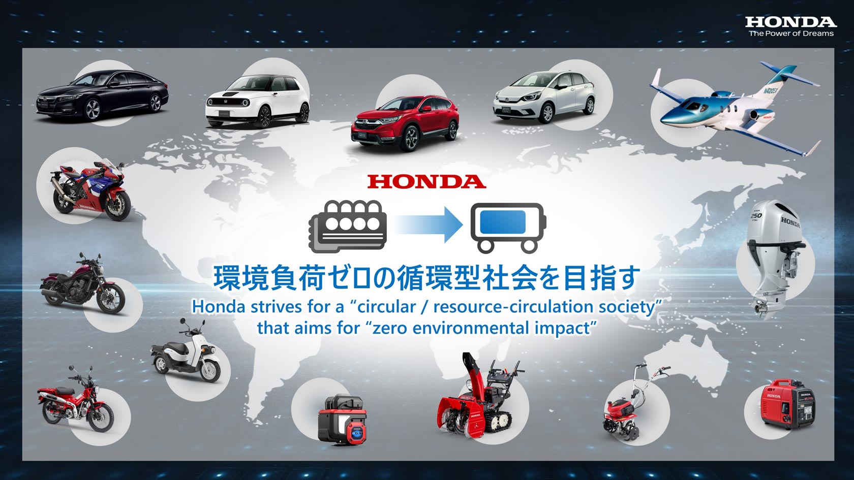 As the world’s largest power unit manufacturer with annual sales of approximately 30 million units of mobility products including motorcycles, automobiles, power products, outboard motors and aircraft, we aim to realize carbon neutrality for all products and corporate activities Honda is involved in by 2050, striving to eliminate carbon emissions from power sources of a wide variety of products. To this end, Honda believes that a multifaceted and multidimensional approach is needed, not a mere replacing of engines with batteries.