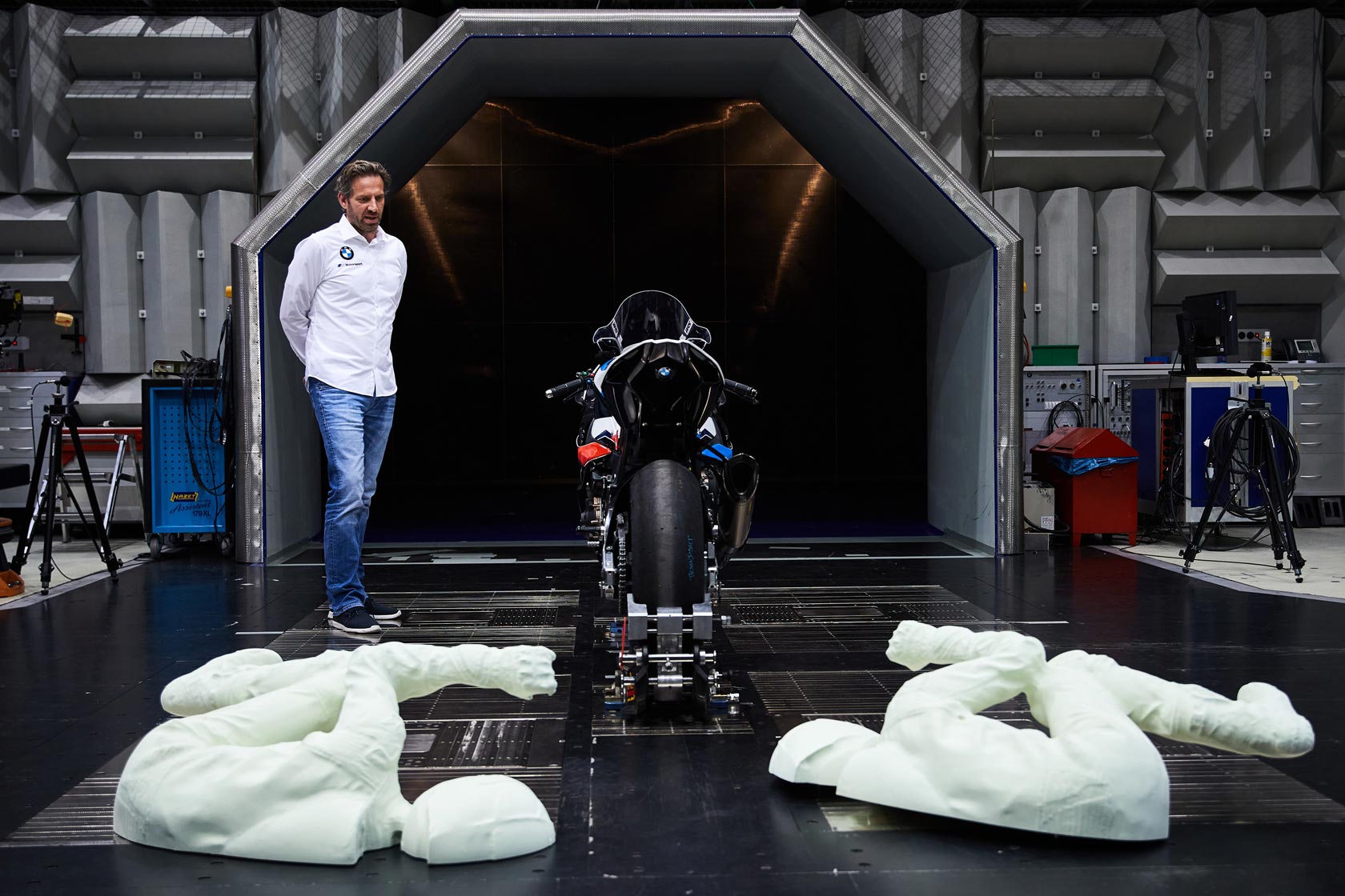 Precision work in the wind tunnel: 3D rider model being used to optimize the BMW S 1000 RR aerodynamics