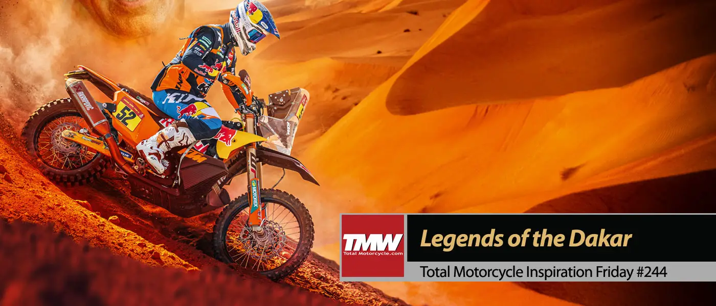Total Motorcycle would like to thank the Dakar Rally and KTM as well as our over 400 million of motorcycle riders and enthusiasts who visit and support TMW for inspiring us to bring you this week’s Inspiration Friday: Legends of the Dakar Exhibition!