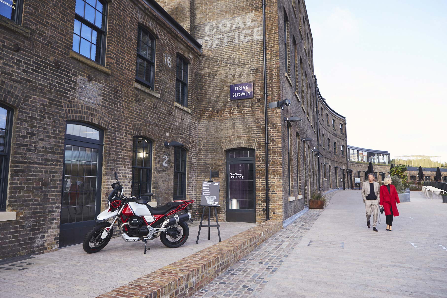 The stars of the evening were the Moto Guzzi V7 Tomoto signed by Dixon, a unique and unrepeatable piece, a mixture of motorcycle art and industrial design, and the Moto Guzzi V85 TT, the great traveller and latest arrival in the Eagle brand family. The two bikes were exhibited in the innovative creative hub on Bagley Walk in London, in the beating heart of the London King’s Cross design hub.