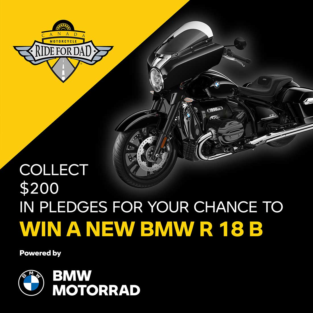 +++ BMW Motorrad Canada partners with Ride For Dad in support of the Prostate Cancer Fight Foundation. +++ Ride For Dad has raised over $39 million since the year 2000. +++ BMW Motorrad Canada to donate an R 18 B as a National Grand Prize. +++