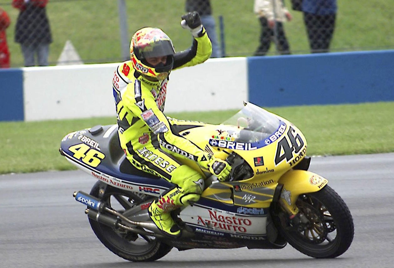 Rossi’s 125cc World Championship debut came at the Malaysian Grand Prix in 1996 and he finished his first international season in ninth place with one race win. The following year he became the youngest ever rider to win the 125cc Title, winning eleven races along the way with Aprilia.