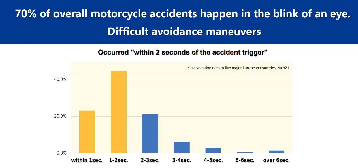 From the moment the cause of a future motorcycle-related accident arises, 70% of them occur within just two seconds afterwards. We also know that the majority of riders are currently unable to make the right maneuvers to prevent the accident in such a short span of time. Additionally, it is no easy feat for a rider to do this properly while facing imminent danger. In these kinds of situations, instead of solely relying on user decision and skill to perform the right evasive maneuvers, it is essential that we try to help with rider-assistive technologies.