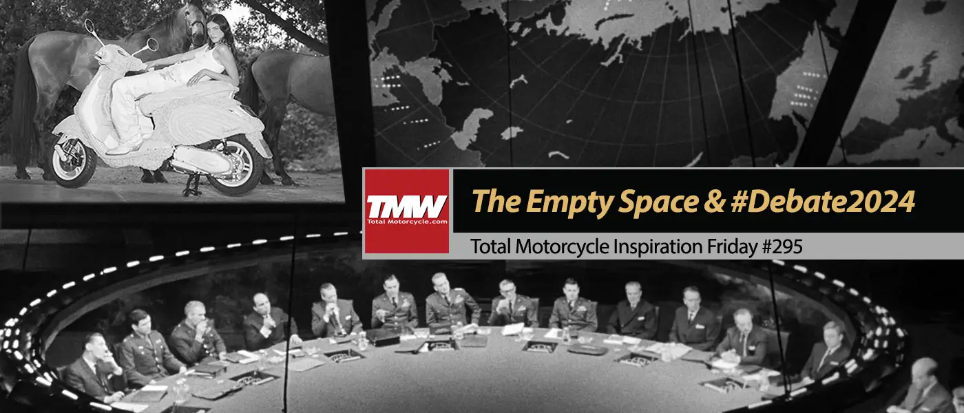 HELP GROW MOTORCYCLING. PLEASE SHARE THIS ARTICLE!Total Motorcycle would like to thank Vespa, Donald Trump, Joe Biden, Debate2024, Vladimir Putin, Xi Jinping and our 425 million of motorcycle riders and enthusiasts who visit and support TMW for inspiring us to bring you this week’s Inspiration Friday: The Empty Space & #Debate2024! Each week we bring you another Inspiring Motorcycle story to inspire you to get out and ride. Please help us by joining Total Motorcycle on Twitter/X, YouTube and please help TMW help riders, support motorcyclists and motorcycling worldwide today by a simple Patreon or by cash donation. Thank you! |
