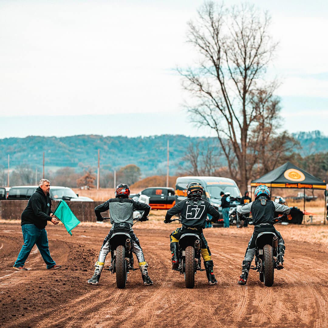 Flat Track is the oldest form of motorcycle racing, ranging from 1/10th of a mile ovals to mile long ovals with speeds up to 135 mph on dirt. The tracks vary in consistency with multiple forms of material on the surface from clay based to crushed limestone. The technique of riding these tracks also changes slightly, making flat track a sport that is easy to ride, but hard to master. Riders of all ages take part in flat track riding and racing, bikes range from 50cc to 800cc, riders will hit top speeds on the straight of the oval before they lean over and slide into the corner to make a 180 degree left hand corner and race back down the other straightaway. The “slide” into the corner is the signature of flat track track. Flat track motorcycles are essentially strip down versions of stock motorcycles and are devoid of a front brake. Flat Track is not only the fastest growing motorsport in the world and rightfully so, it is reasonably easy to learn, involves a comparatively low set up cost and is a whole lot of fun. Royal Enfield Slide school aims to introduce/help/assist in understanding the nuances of this sport and together build something great with our school partners.