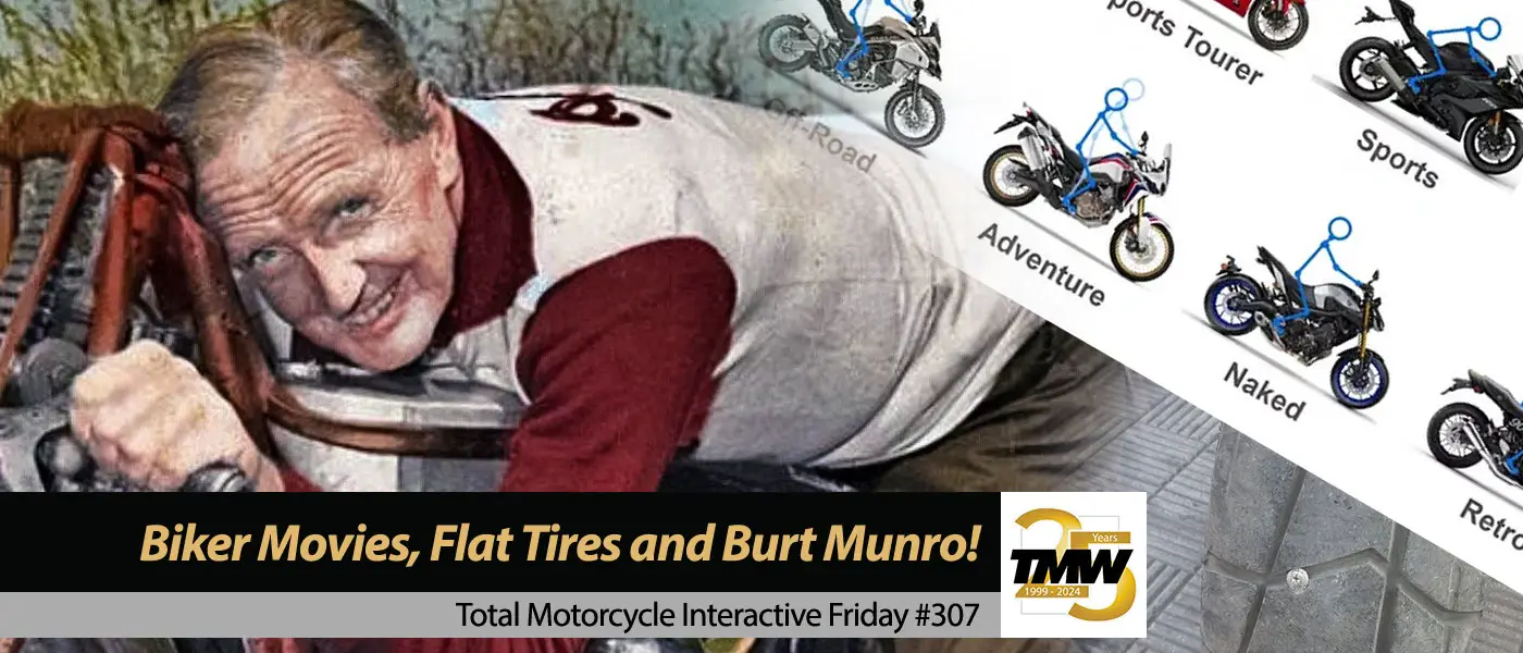 Another great week asking riders questions, interactive survey’s and polls and asking you about you! Yes, it’s Interactive Friday: Motorcycle Movies, Flat Tires and Burt Munro week #307 over at Total Motorcycle and X @totalmotorcycle. First big news, we passed 26k followers (26,323 as of writing) and are following over 29k riders on X! That’s a huge community there Total Motorcycle has created and riders around the world are part of! Have you joined us? If not, both our TMW community forums and @totalmotorcycle community awaits you!