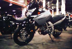 As we made our way around the showroom, we were surprised to the the Suzuki SV650 there. Canada has had the SV650S for a few years now, but there was no rumor of the SV650 standard coming to Canada for 2004. Suzuki will indeed be selling the SV650 in Canada for 2004. We think it to be a very wise move as the SV650S has been a very good seller for them since it was first introduced in North America. Suzuki told us that they were worried about the sales competition between the SV650 and SV650S in Canada since Canada is not a very big global motorcycle market. Demand has been so high to bring it to Canada that they are hoping it does well and does not hurt sales of the SV650S. The SV650 is a few hundred dollars less than the SV650S and offers a more comfortable upright touring position but no wind fairing.