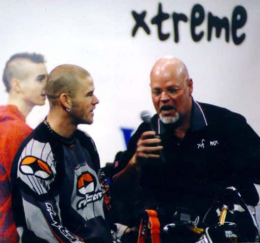 Mike can easily be found on numerous web sites for his freestyle motocross and motocross racing. His six years of motocross racing (1994 to 2000) has given him a very strong basic bike skills, which he has shown in the last three years of freestyle competitions. His racing experience gives him the basic motorcycle skills to build on in freestyle competition. This, Mike says, is an important background for freestylers.