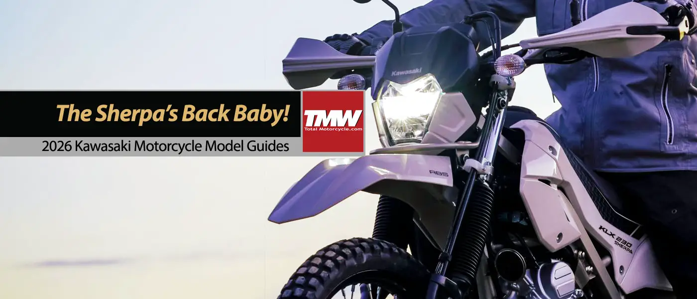 Just in: New 2026 Kawasaki Motorcycles – Get out and Play! Twist the throttle and go with 17 new 2026 Kawasaki models. Kawasaki’s latest dual-sport machine, the 2026 Kawasaki KLX230 Sherpa S ABS, is designed for riders who crave adventure, whether navigating city streets or tackling rugged trails! Inspired by the proven KLX230S, the SHERPA S takes accessibility a step further with its low 32.5-inch seat height and tubeless rear tire, ensuring easier repairs and greater versatility on all types of terrain. This lightweight, nimble machine features a 233cc fuel-injected, air-cooled single-cylinder engine, housed in a compact perimeter frame that delivers confidence-inspiring handling. The aluminum skid plate and handguards offer extra protection when venturing into the unknown, while selectable ABS and disc brakes provide precision stopping power no matter the conditions.