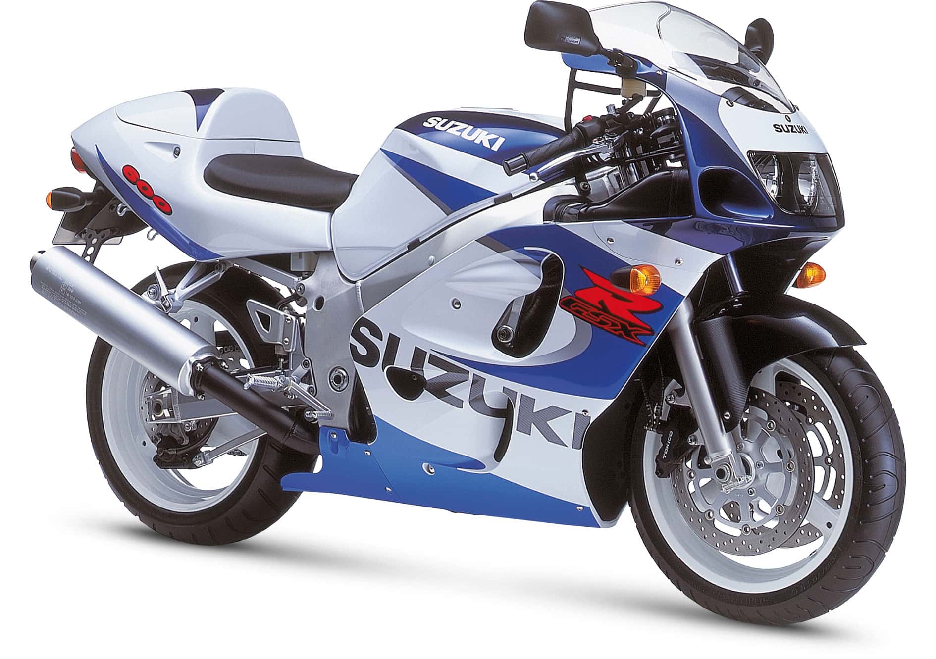 No major changes other than graphics. The 1998 GSX-R600 featured new graphics with “600”, SRAD (Suzuki Ram Air Direct) being added and the Suzuki logo changing to a more agressive position on the fairing. Also note the front fender is changed to black while the rear seat cowel, headlight fairing and tank changes their stripes.