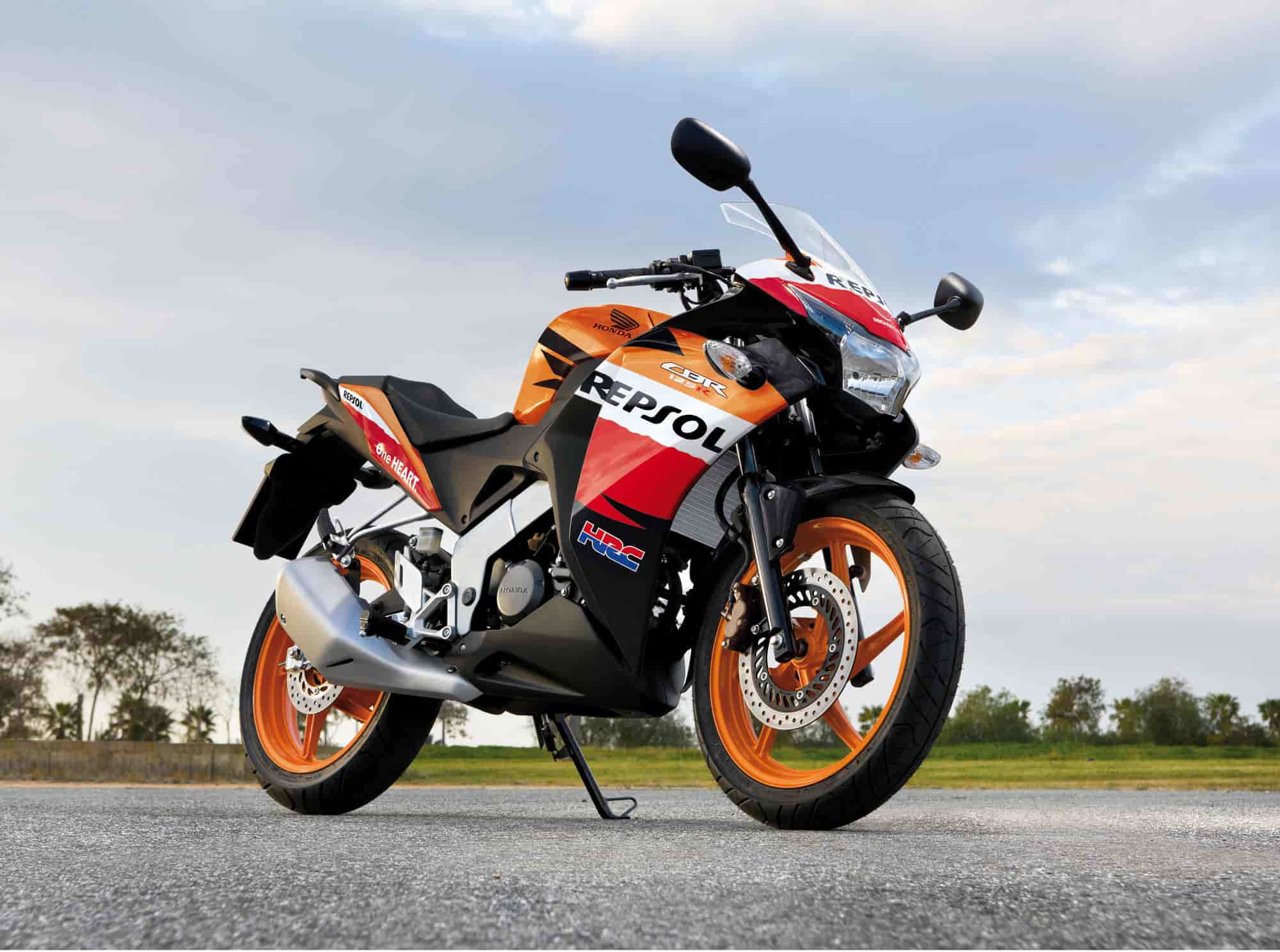 Wide race-style cast wheels and high-traction sport tires add to the CBR125R’s sporty credentials..
