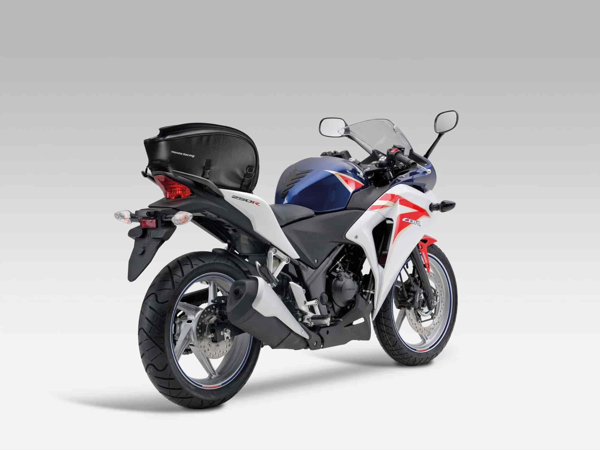 A new Tailpack Set fits over the pillion seat and allows the rider to take extra luggage without compromising comfort or the riding performance of the CBR250R. The streamlined design matches the bike’s sporting lines and the Tailpack Set features a four-point preset fixing system, making it quick and easy to fit and remove. The Honda Racing logo serves as an additional reminder of the CBR250R’s racing pedigree. The Tailpack comes with an integrated rain cover.