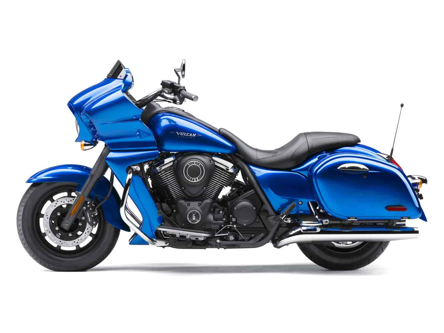 Cool, low, long, ultra stylish – all these adjectives fit the Vulcan® 1700 Vaquero™ plus one more – plenty functional. This bagger, introduced just last year into the Vulcan cruiser line, proves that practicality and cool can co-exist on the same bike. Its aggressive and muscular styling makes any Vaquero rider stand out from the crowd. And with a powerful 1,700cc engine, electronic cruise control and full-featured audio system, the Vaquero begs to be taken out on the open road.