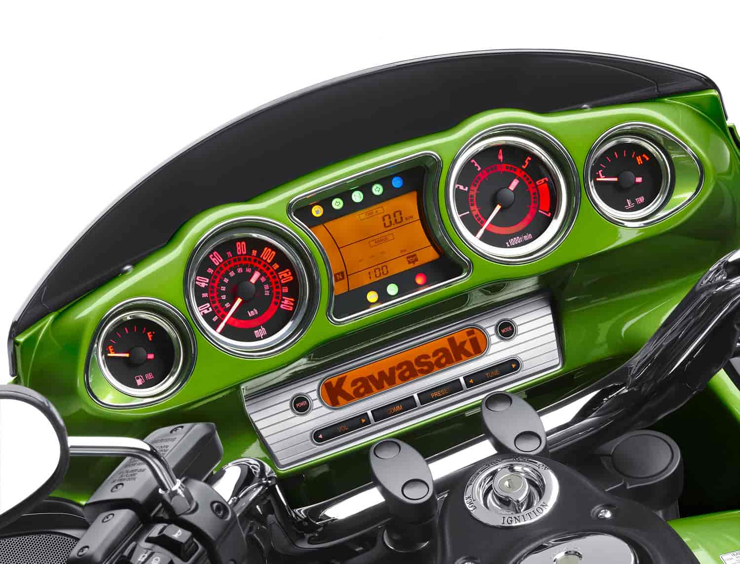 • Unique “muscle car” styled instrumentation keeps the rider fully informed