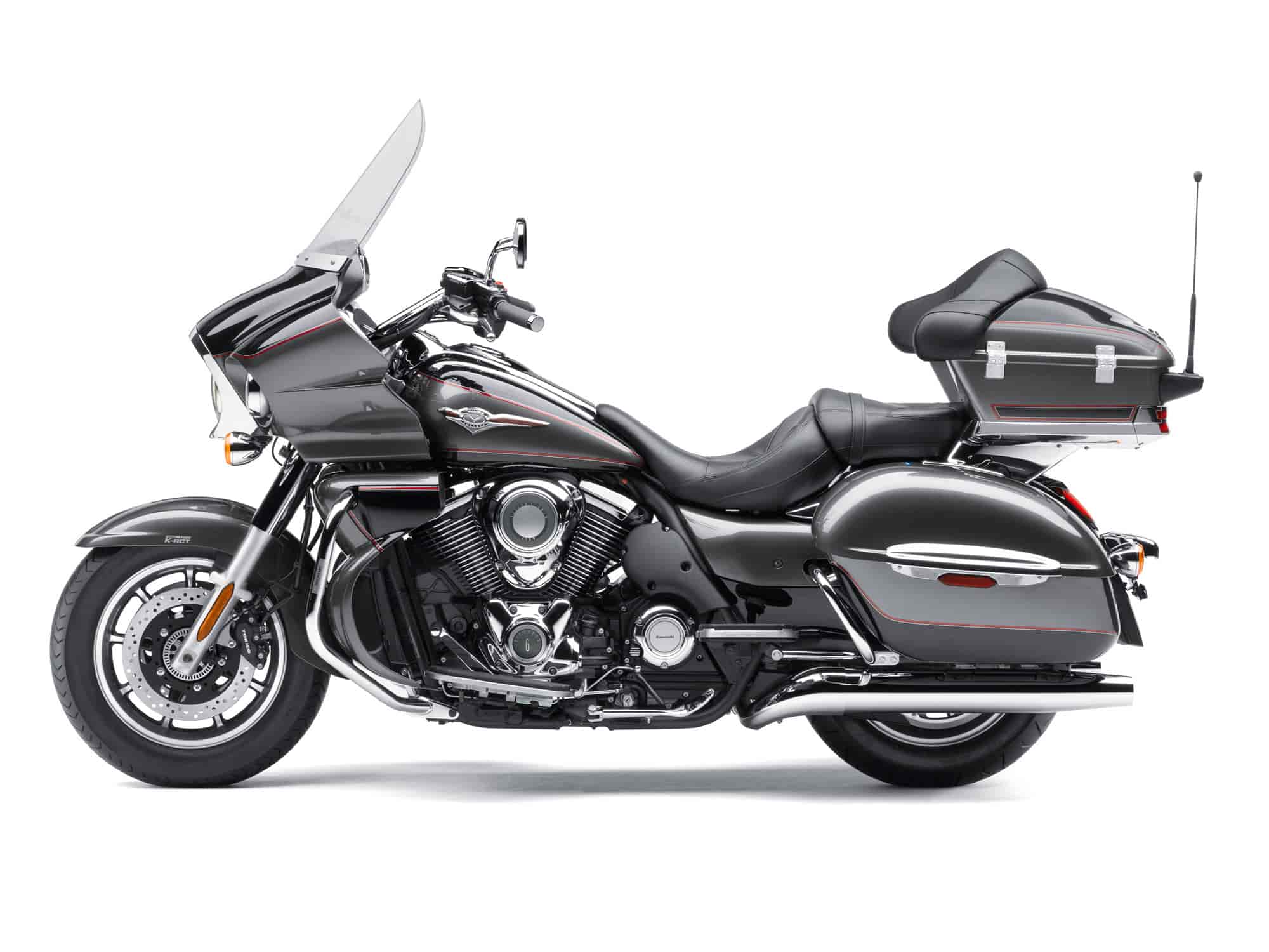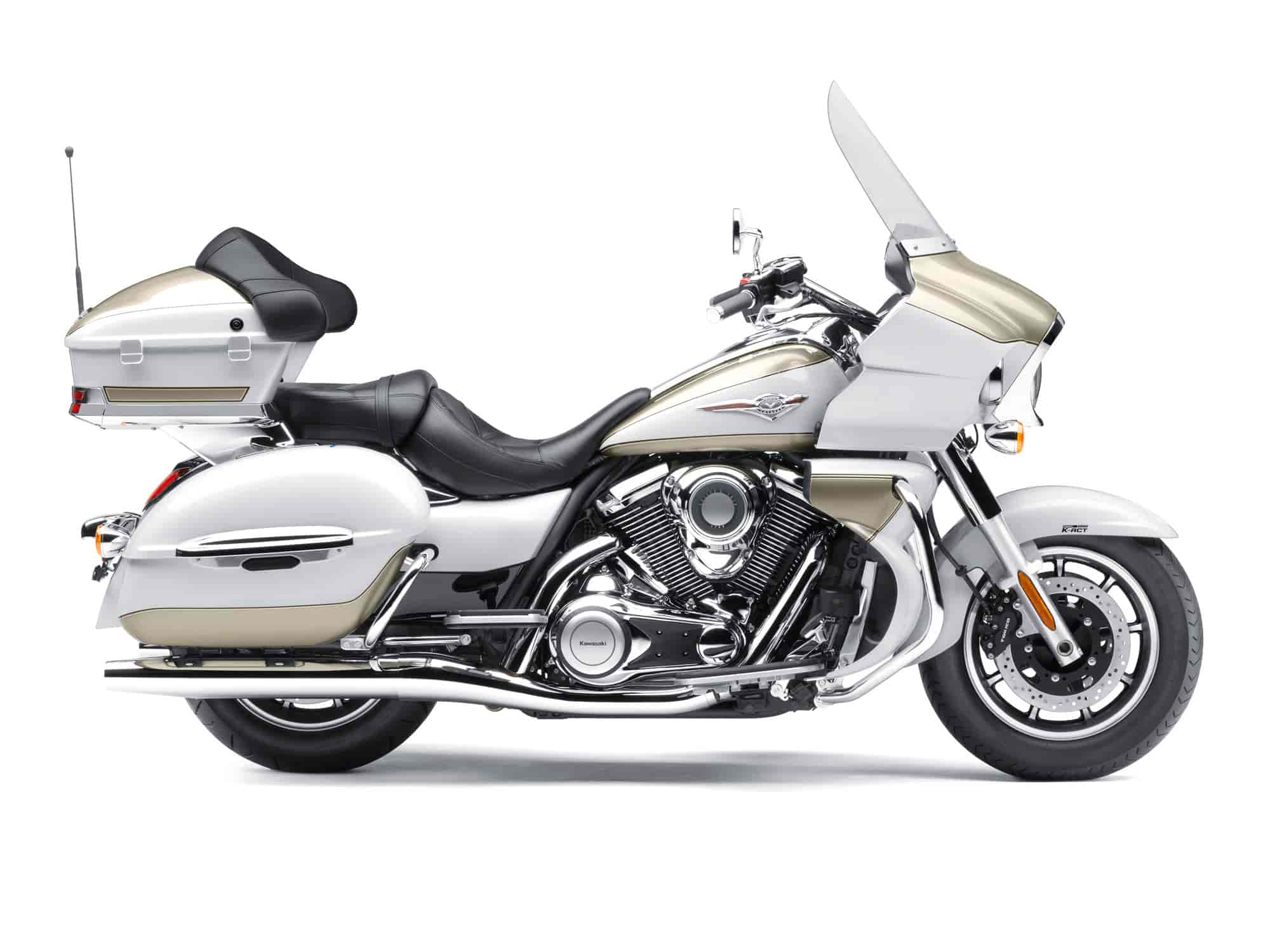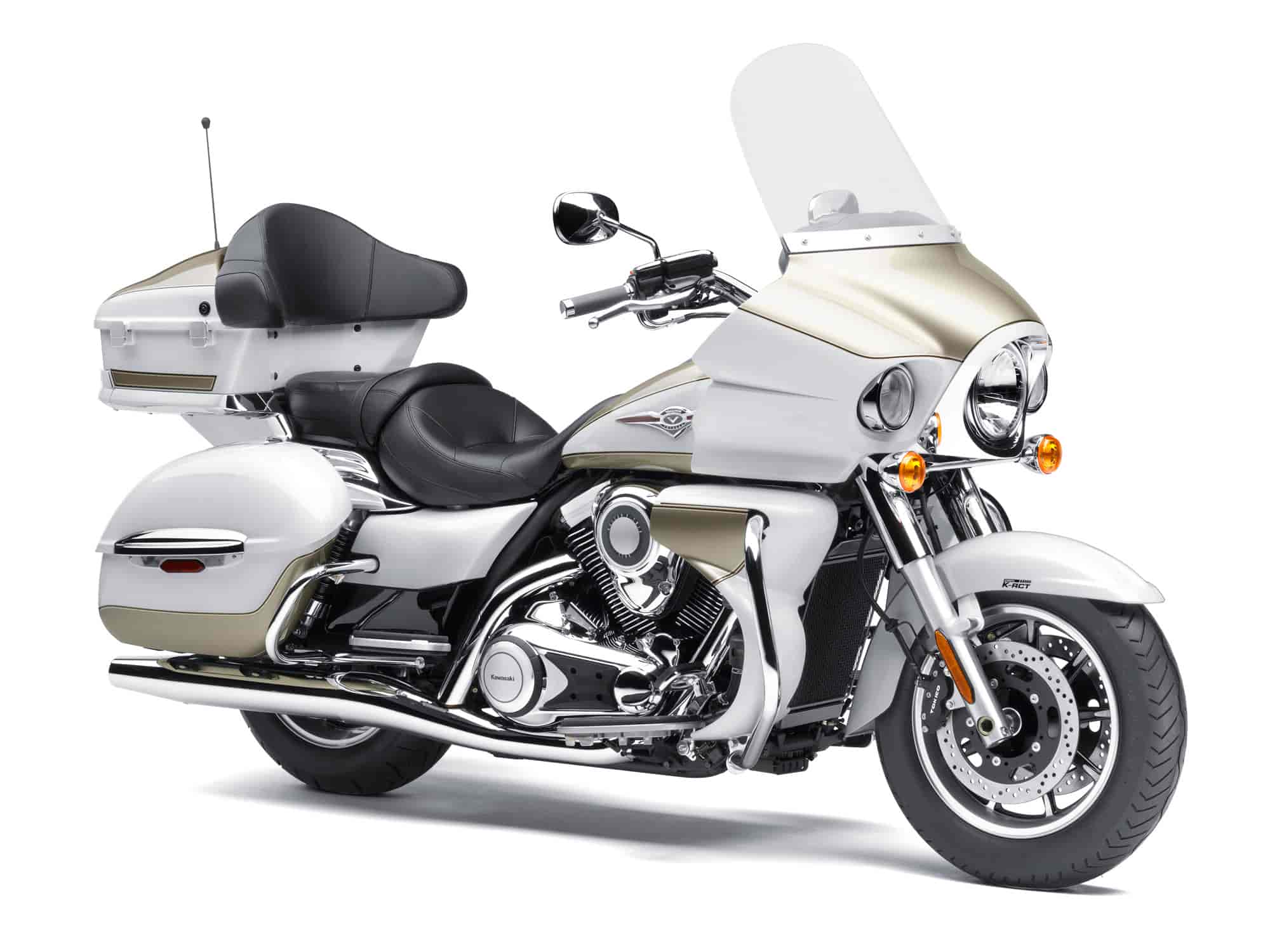 • Voyager ABS models feature the latest, fastest version of Kawasaki’s sophisticated K-ACT system, which enables riders to execute controlled, balanced braking. Designed to complement the riders’ brake inputs, the system distributes the ideal amount of brake pressure to maximize braking efficiency