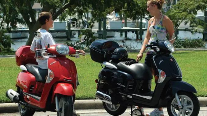 After the success of the Like 50 debut last fall, the anticipation of a larger displacement vintage styled option was growing. Welcome the new Like 200i. The perfect combination of classic vintage nostalgia and KYMCO modern technology and reliability is now in a fast, agile mid range displacement scooter. Experience true 2-up performance with a 160cc Electronic Fuel Injected engine. With plenty of underseat storage, along with a color matched top box as standard equipment for groceries and packages, you’ll be able to get your errands done and have fun at the same time! Available in three classic colors: Black, Red and Ivory. The Like 200i uniquely blend agility, performance and economy. Now in two engine choices for cruising around the town or sprinting through city traffic.