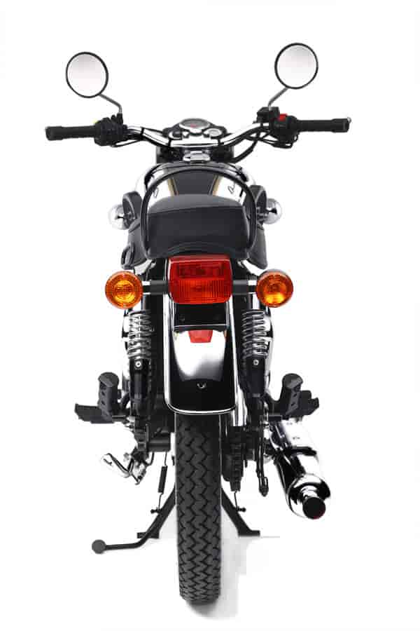 Chrome mudguards front and rear, chrome tool box covers and authentic Avon Speedmaster tyres enhance the period appearance of this 500cc air cooled single and the impression of a classic British bike is reinforced by the exhaust note.